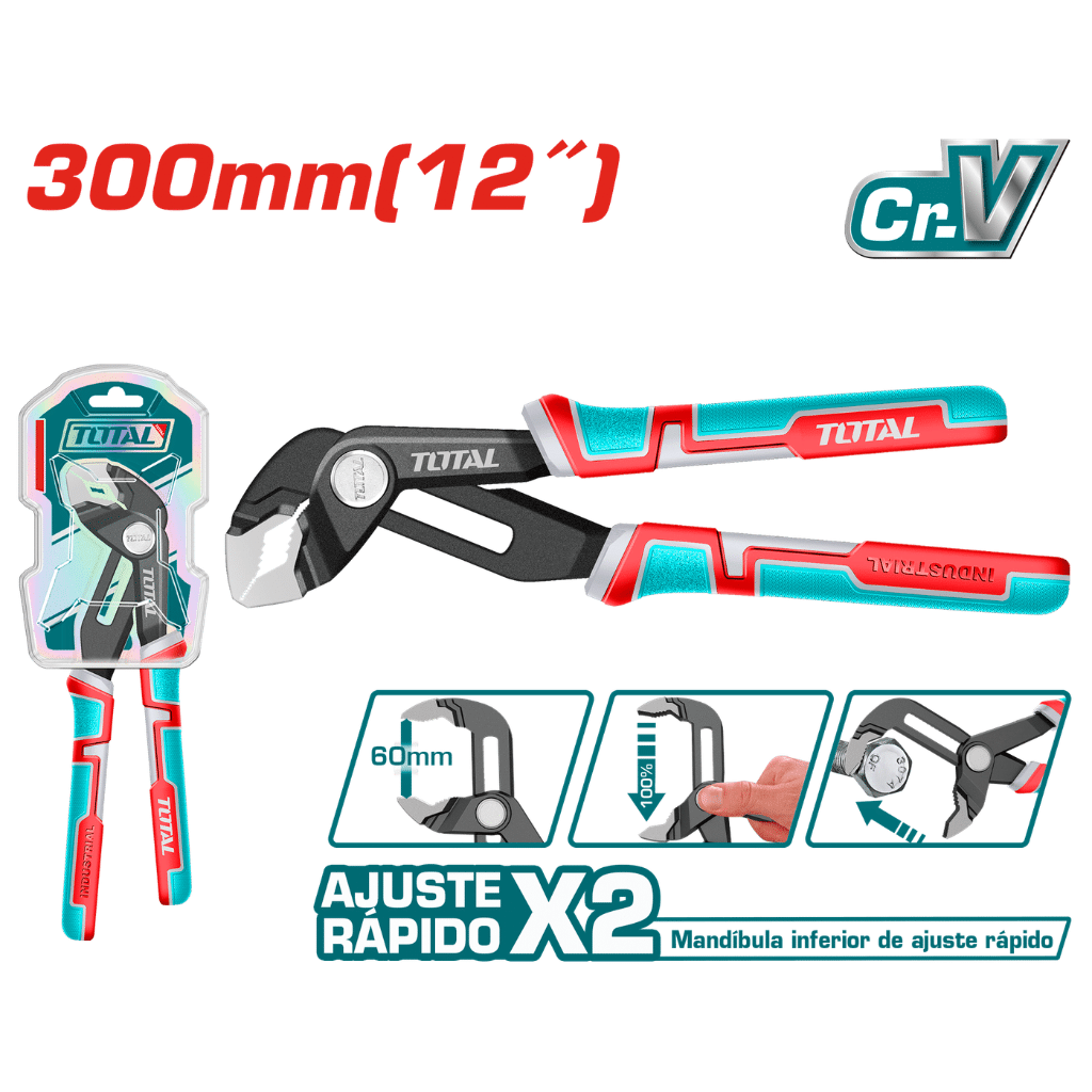 ALICATE PARA TUBOS 12'' 300MM MAX:60MM CR-V 2XF RAPIDO / MANGO TPR INDUSTRIAL - THT381206