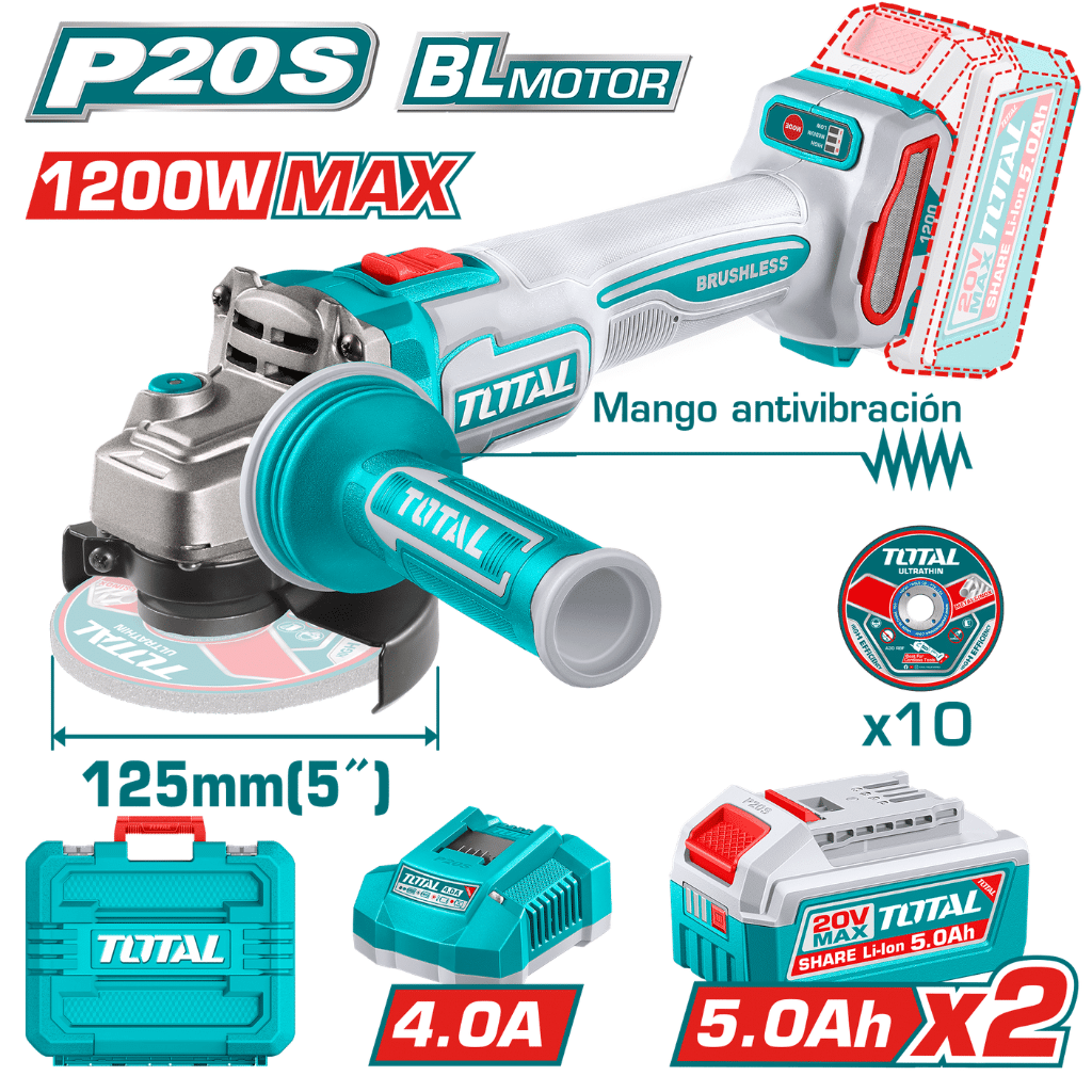 AMOLADORA 20V BL 3000-9000RPM 125MM M14 1200W ANTI-VIBRACION 2X5.0A - TAGLI2120272