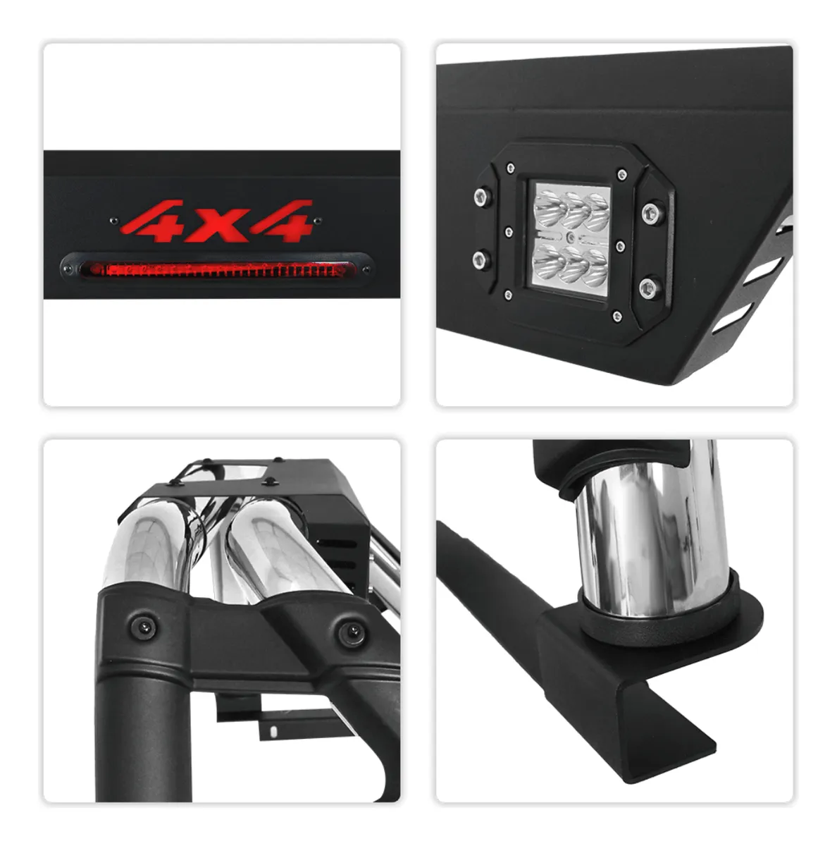 La barra antivuelco de acero con luz LED y luz de freno modelo X35010 de la marca Safari es la solución ideal para quienes buscan seguridad y funcionalidad en sus vehículos. Con un diseño ovalado y un diámetro de tubo de 26 mm, esta barra ofrece una robustez excepcional, garantizando la protección necesaria en caso de vuelcos.