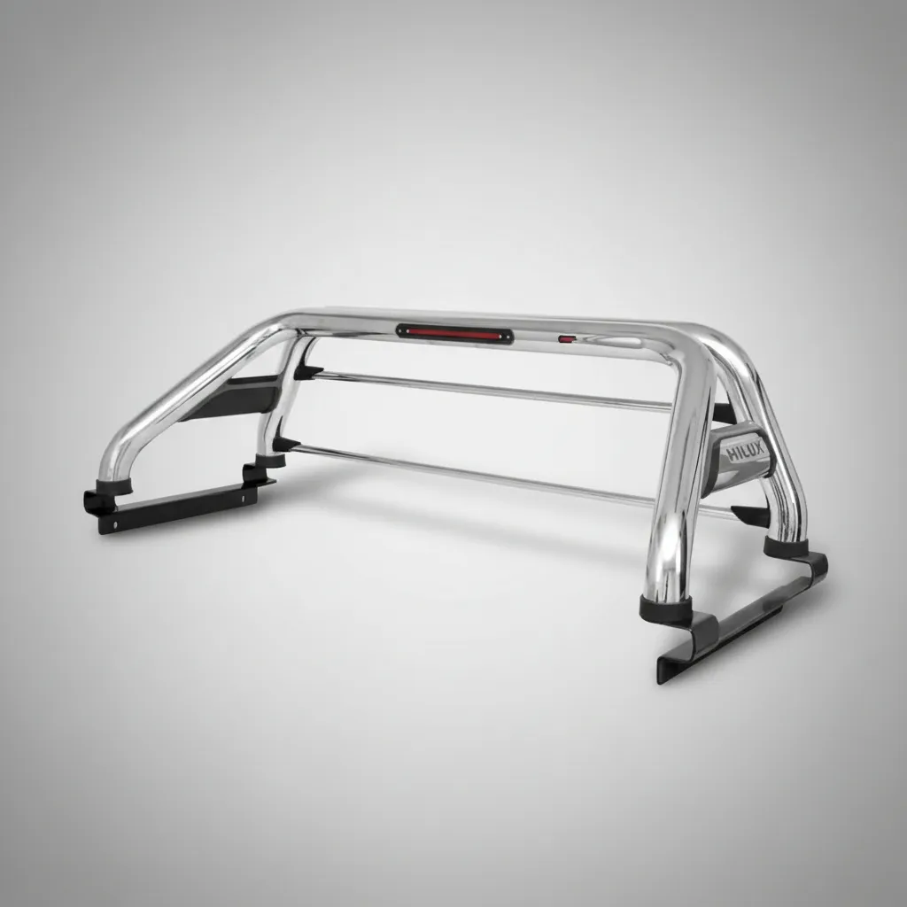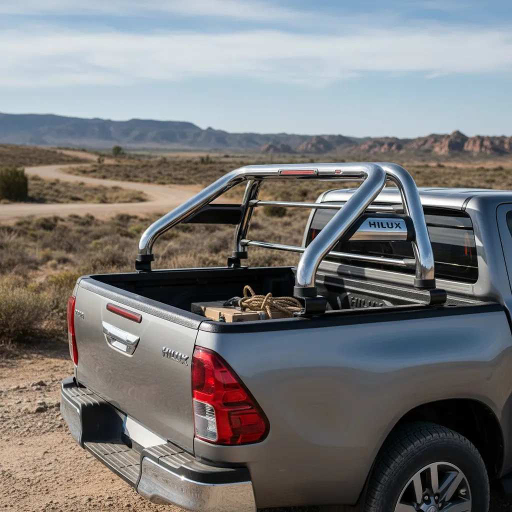 Fabricada con materiales de alta calidad, la barra garantiza durabilidad y resistencia ante condiciones adversas. Su diseño elegante se integra perfectamente con la estética de tu Hilux, realzando su apariencia sin comprometer su funcionalidad.