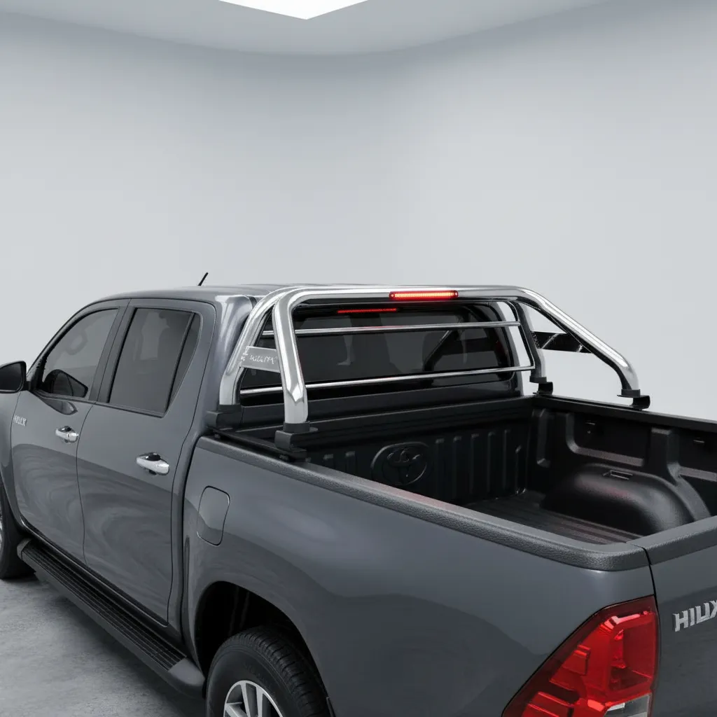 La barra antivuelco de acero con luz para Hilux Revo 2015-2020, modelo W56406 de la marca Wimbo, es la solución ideal para quienes buscan seguridad y estilo en su vehículo. Con una altura de 65 cm y un largo de 130 cm, esta barra redonda no solo proporciona una protección efectiva, sino que también añade un toque moderno a la estética de tu camioneta.