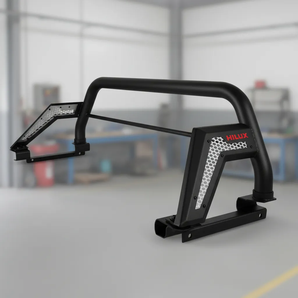 La barra antivuelco Mv Acero Base Alta para Hilux Revo 2015-2020 es la solución ideal para quienes buscan seguridad y estilo en su vehículo. Fabricada por Winbo, esta barra presenta un diseño redondo que se adapta perfectamente a la estética de tu camioneta, brindando un toque robusto y moderno.