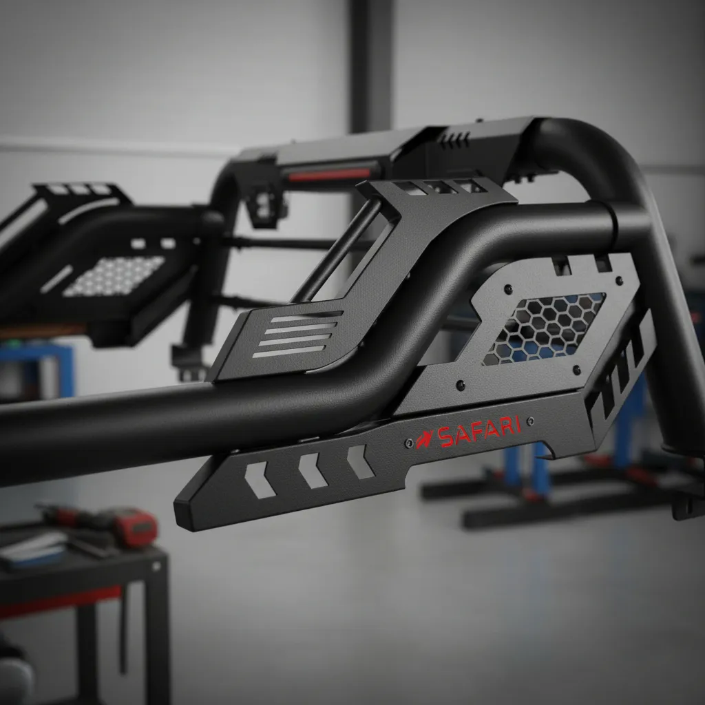 La barra antivuelco S8 C Luz De Freno y trabajo para Hilux Revo 8va Generación años 2016 en adelante es la solución ideal para quienes buscan seguridad y estilo en su vehículo. Con un diseño ovalado que combina funcionalidad y estética, esta barra de la marca Safari se adapta perfectamente a las camionetas y autos, brindando una protección adicional en caso de vuelcos.