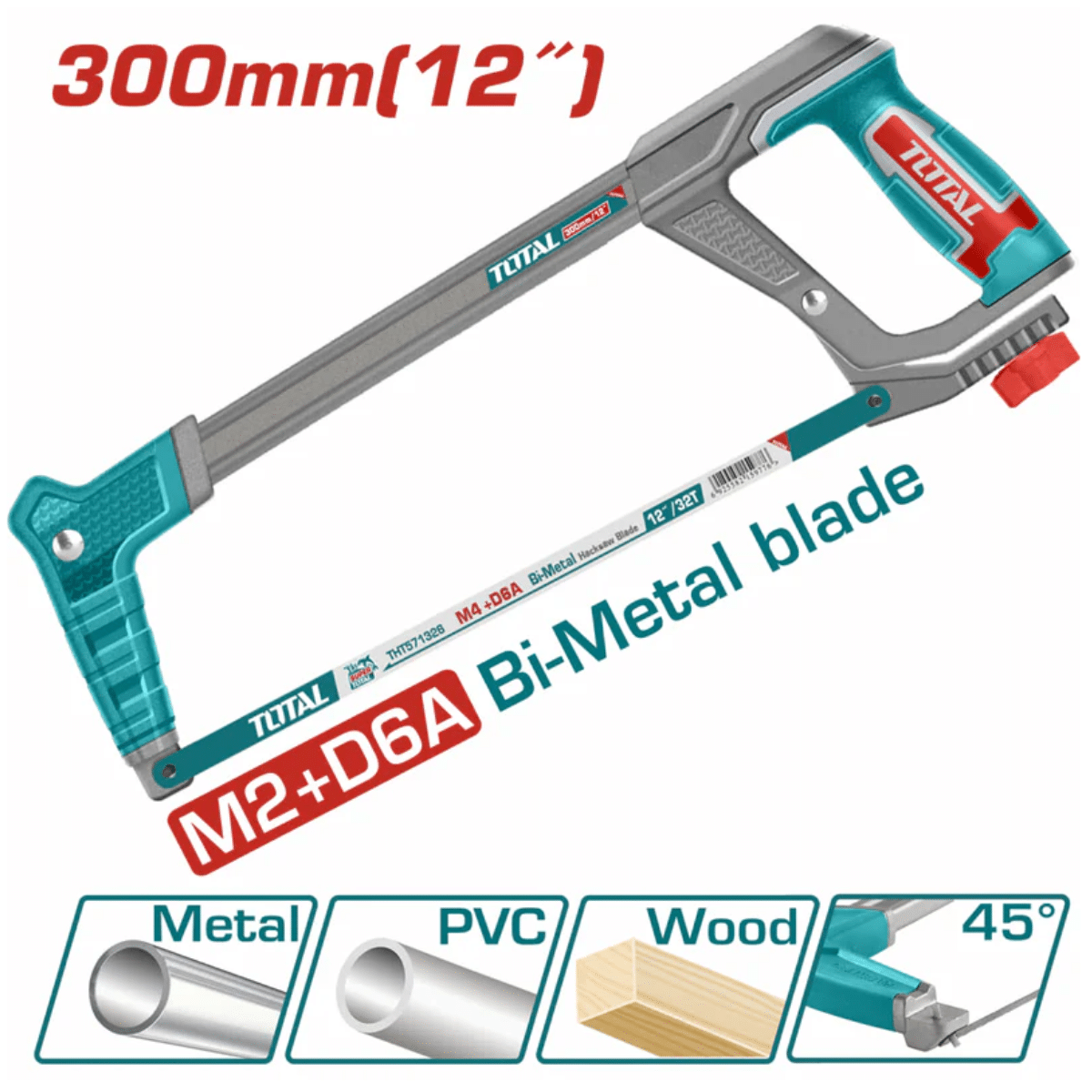 - Incluye: 1 hoja de sierra bimetálica de 300mm (12''), 24 TPI, M2+D6A