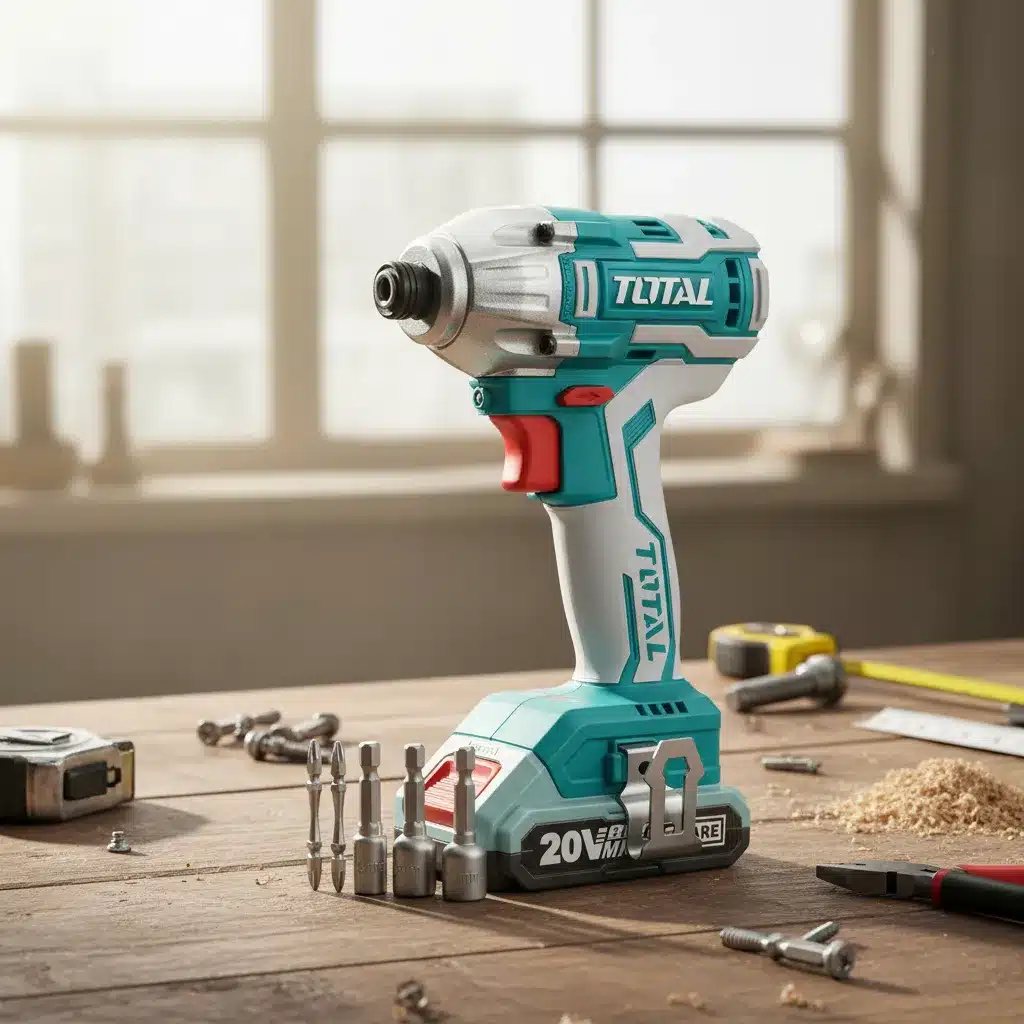 Llave impacto dado hexagonal 1/4'' litio 20V. Brushless sin escobillas Torque 200NM incluye 1 cargador , 2 baterias litio y maletin. Carga total en 1 hora. 110V-240V~50/60Hz . (6 meses) Marca Total