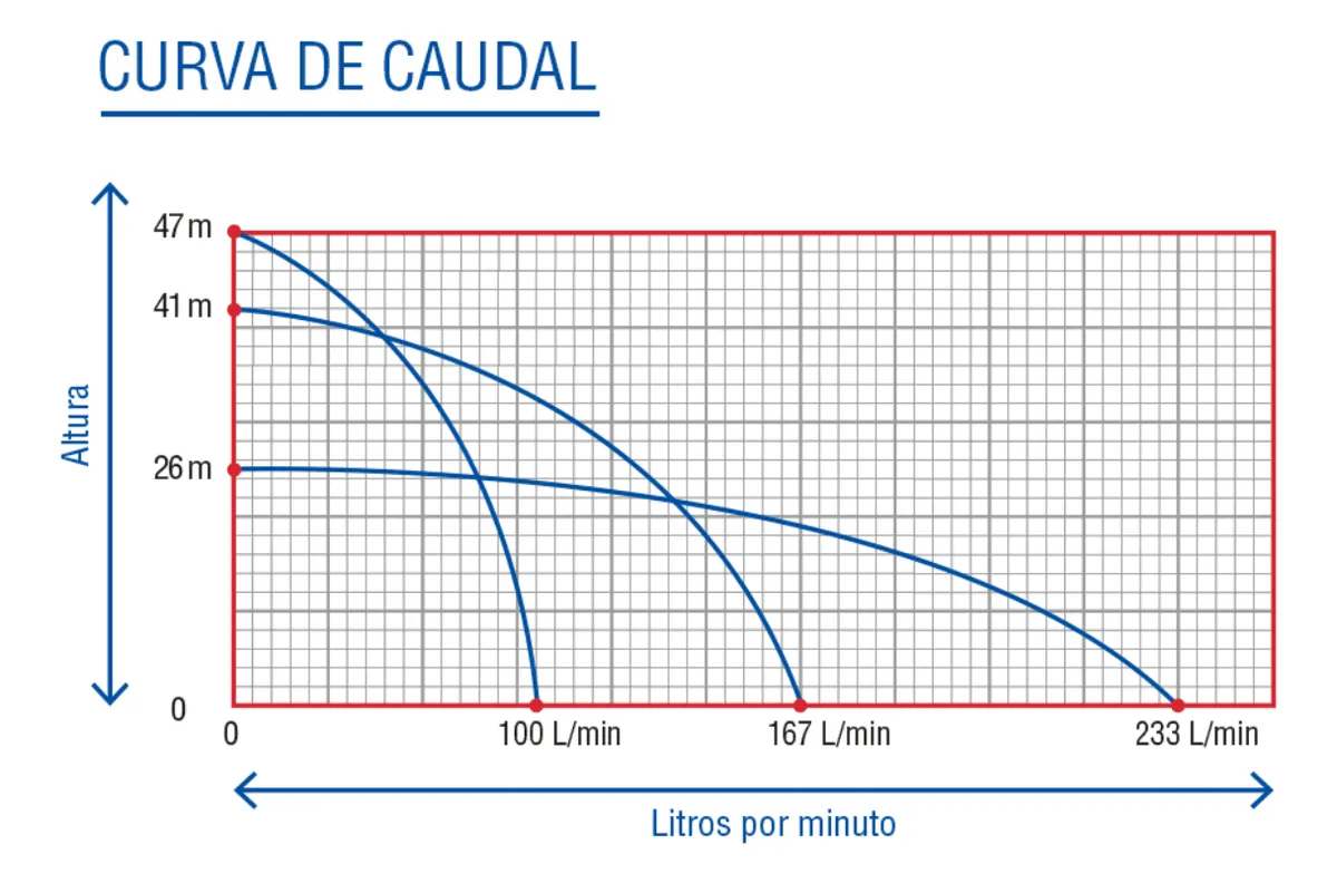 Su inmersión máxima de 52 metros permite acceder a fuentes de agua profundas, mientras que su nivel mínimo de agua de 5 metros asegura un funcionamiento seguro y confiable. Esta bomba es perfecta para usuarios que requieren un equipo robusto y eficiente, sin complicaciones adicionales.