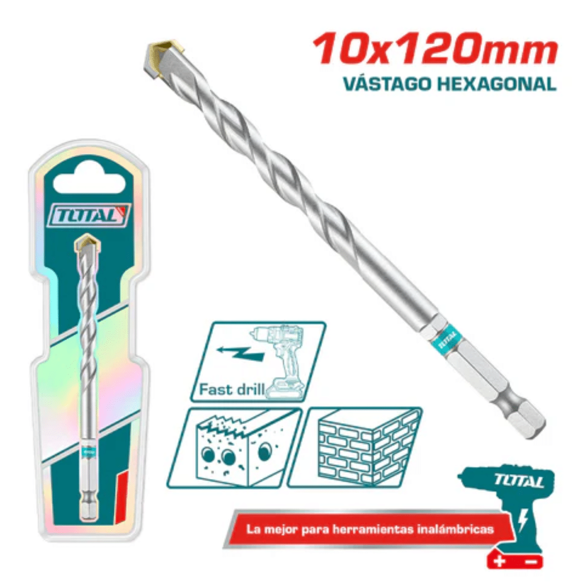 La broca para concreto 8x120 mm Total está diseñada para perforar con precisión concreto, ladrillo y mampostería. Su punta reforzada facilita un avance eficiente en materiales duros, ideal para fijaciones, instalación de tuberías y anclajes en obra. Perfecta para uso profesional, ofrece durabilidad y rendimiento constante en tareas de construcción y mantenimiento que requieren perforaciones profundas y confiables.