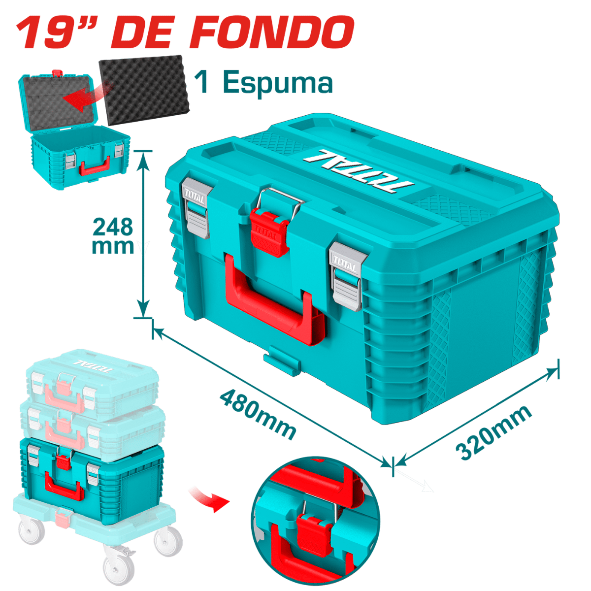 Descripción general Caja de herramientas apilable de 19" diseñada para organizar, mover y proteger herramientas