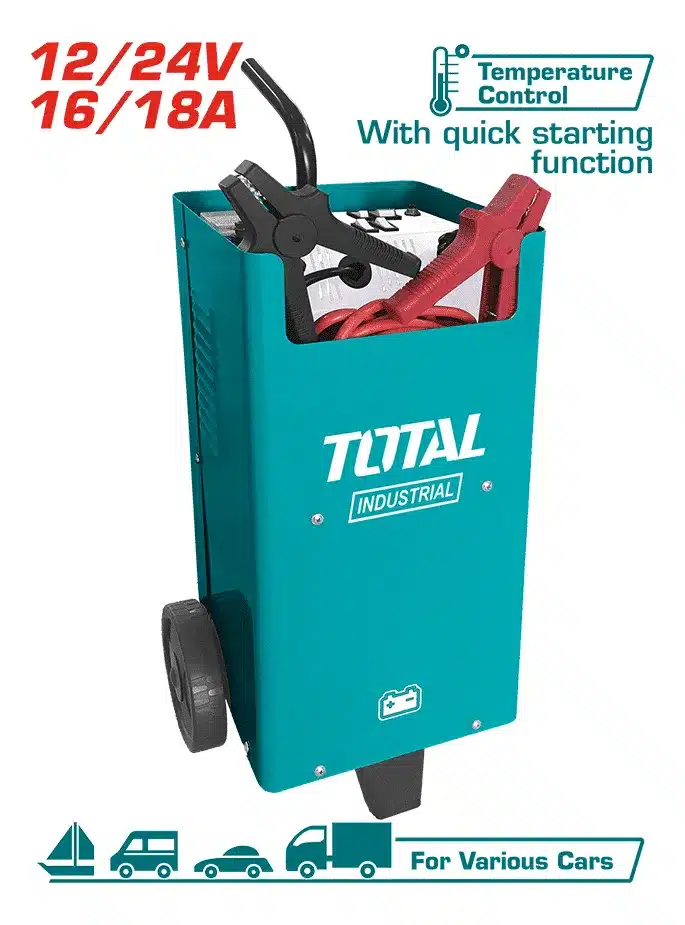 El Cargador de Batería 220v Total es la solución perfecta para cargar baterías de 12 y 24v con capacidad de 70-300ah. Con su diseño en color turquesa, este modelo TBC2201 ofrece una potencia máxima ideal para mantener tus baterías en óptimas condiciones. Su corriente de salida garantiza una carga eficiente y segura. ¡No esperes más para adquirir este cargador de batería de alta calidad!