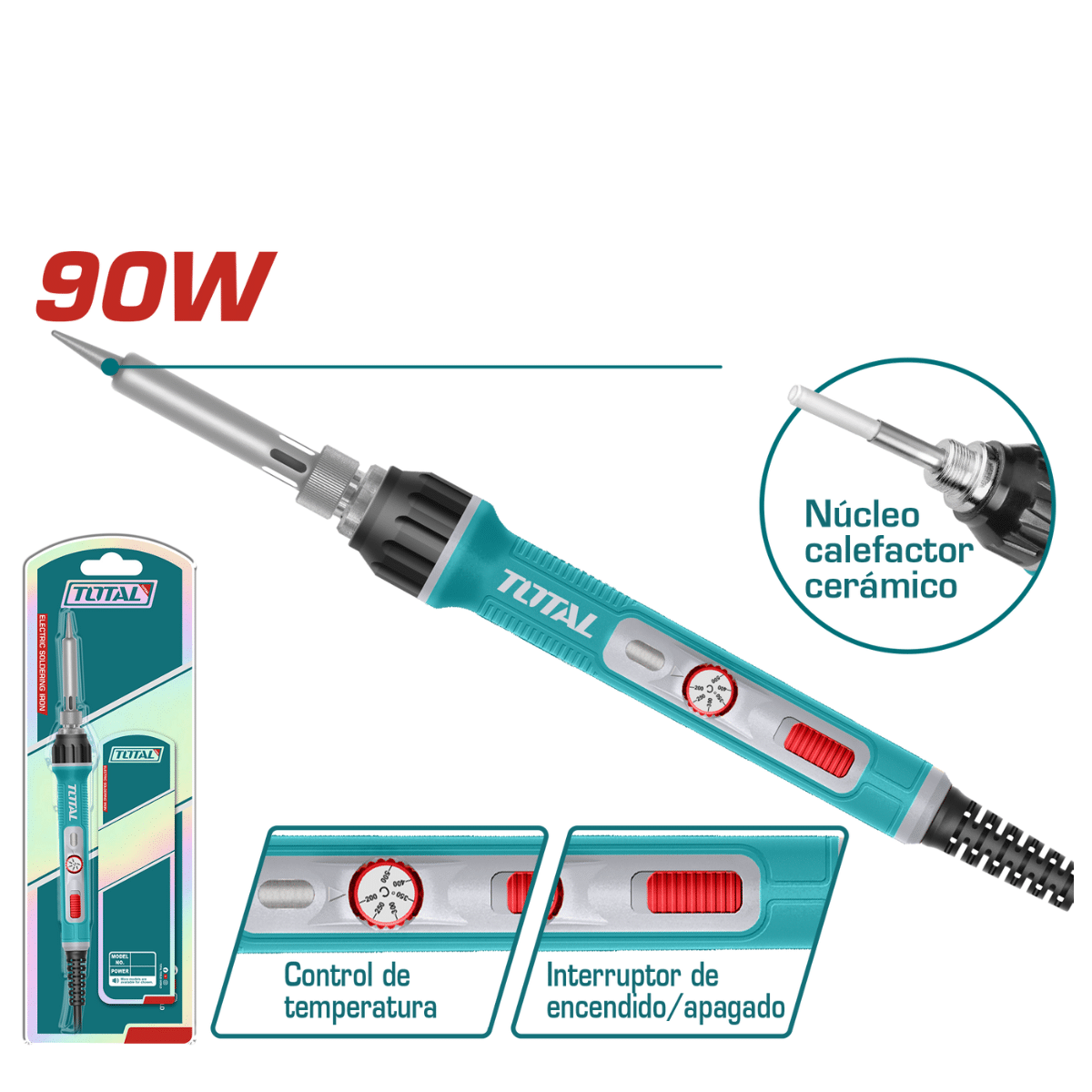 Ventaja Con una potencia de 90 W, se calienta de forma rápida y estable, tiene una larga vida útil y un interruptor de encendido/apagado.