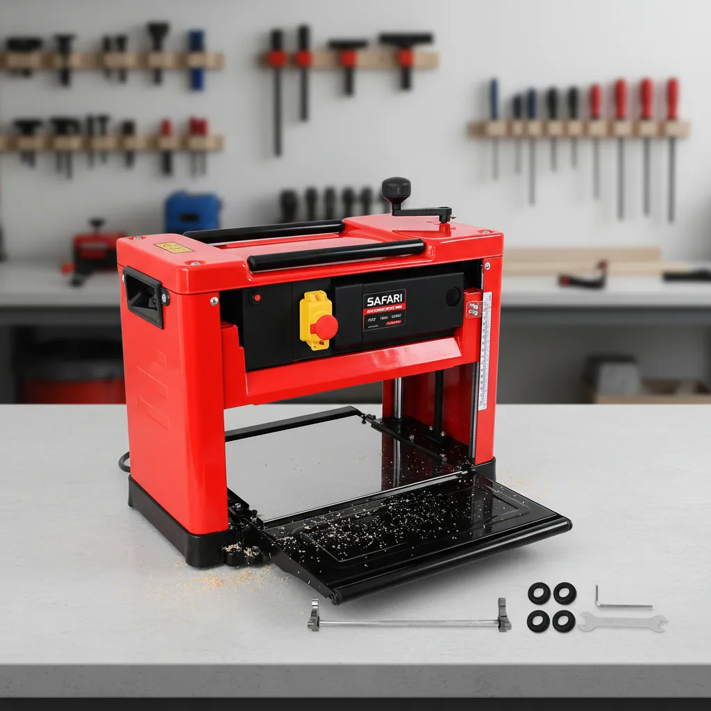 CEPILLO DE BANCO - M1B-LS  de la marca Safari es una herramienta potente y eficiente para trabajos de carpintería. Con una potencia de 2000 W, este modelo M1B-LS garantiza un cepillado preciso y rápido. Su anchura de cepillado de 330 mm y una profundidad de cepillado de 3 mm lo hacen ideal para proyectos de gran tamaño. Además, su diseño bloqueable brinda mayor seguridad durante su uso. ¡Hazte con este cepillador y lleva tus proyectos al siguiente nivel!