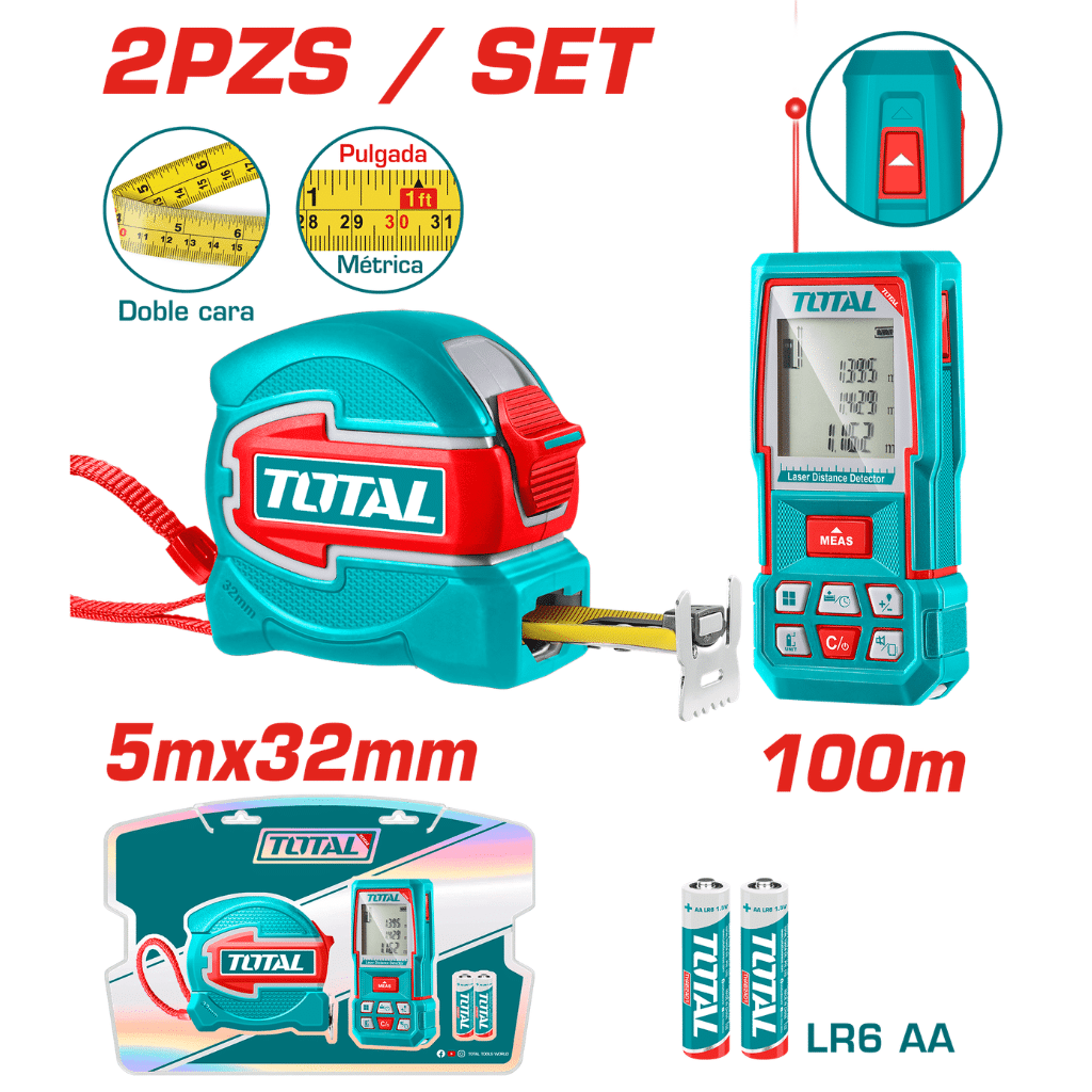 | Accesorio | Laser distance detector (TMT51036) – Steel measuring tape (TMT80532) – 2 piezas de baterías LR6 AA – Detector de distancia láser (TMT51036) – Cinta métrica de acero (TMT80532) |