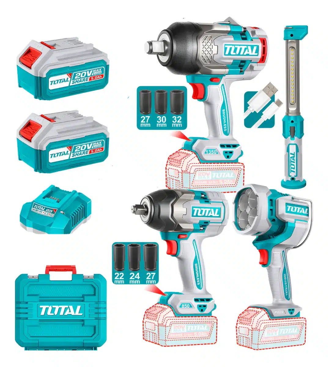 Descubre la potencia y versatilidad del Combo 4 En 1 de Total, diseñado para satisfacer las necesidades de los profesionales y entusiastas del bricolaje. Este conjunto incluye dos llaves de impacto, una de 1350Nm y otra de 850Nm, que garantizan un rendimiento excepcional en cualquier tarea. Con una linterna de 2000 lúmenes, tendrás la iluminación necesaria para trabajar en condiciones de baja visibilidad.