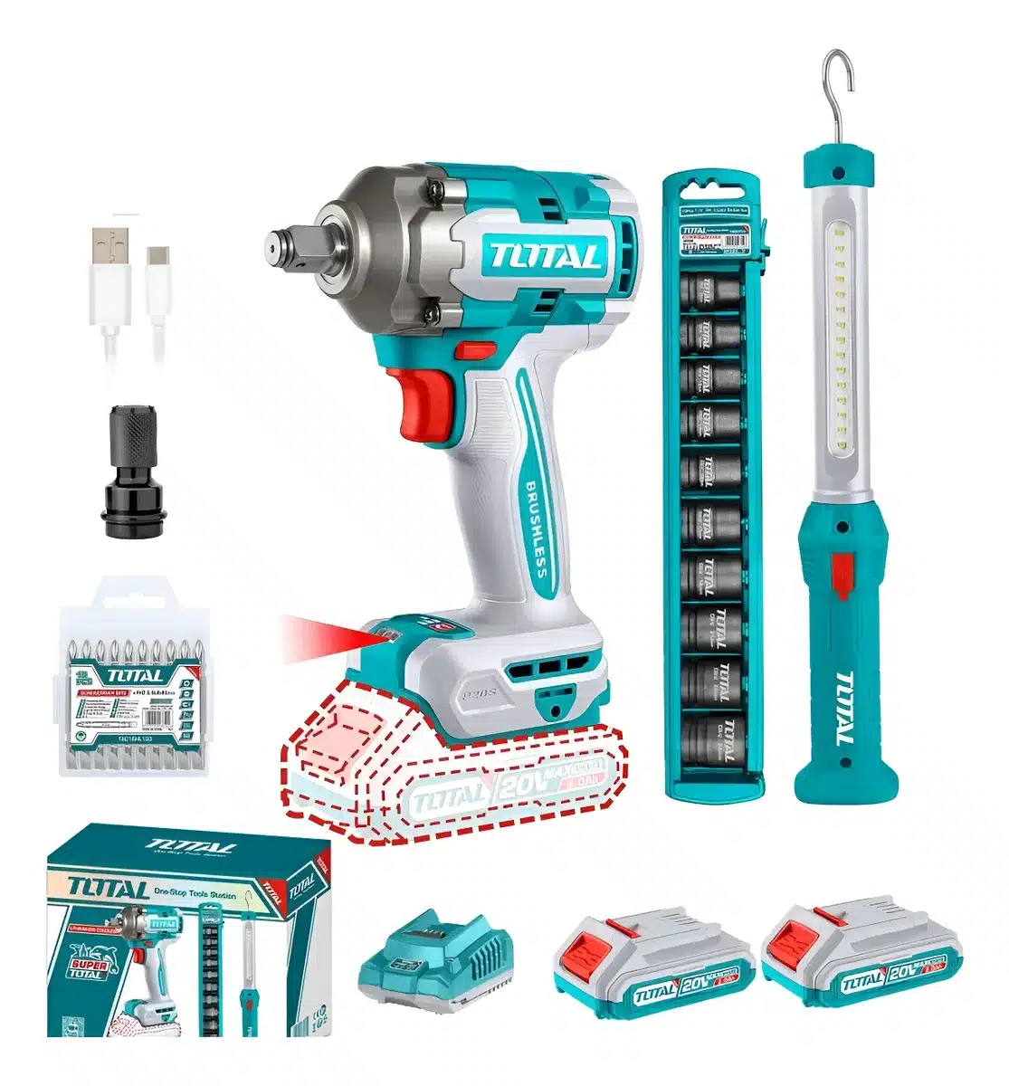 El modelo cuenta con un cabezal hexagonal de 1/2" y una velocidad máxima de rotación de 2300 rpm, lo que garantiza un ajuste rápido y preciso. Incluye accesorios como dados, puntas y un cable USB, asegurando que tengas todo lo necesario para comenzar a trabajar de inmediato. Además, su batería de litio de 20V proporciona una autonomía prolongada, permitiendo realizar tareas sin interrupciones.
