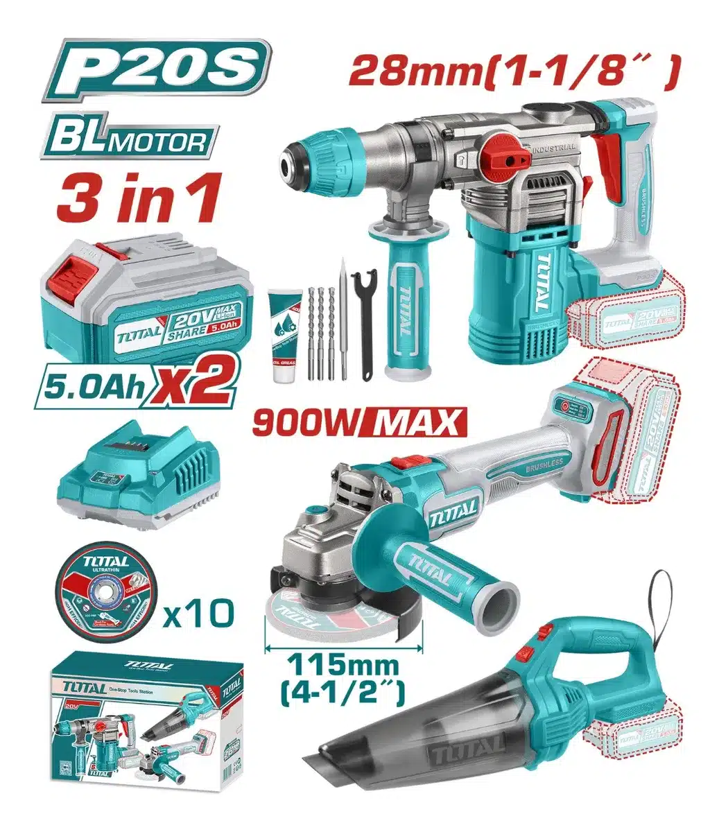 El kit Total TOSLI240785 es la solución ideal para quienes buscan herramientas versátiles y de alto rendimiento. Este conjunto incluye una aspiradora potente, un rotomartillo y una amoladora, todo diseñado para facilitar tus proyectos de bricolaje y mantenimiento en el hogar. Cada herramienta está fabricada con materiales de calidad, garantizando durabilidad y eficiencia en cada uso.