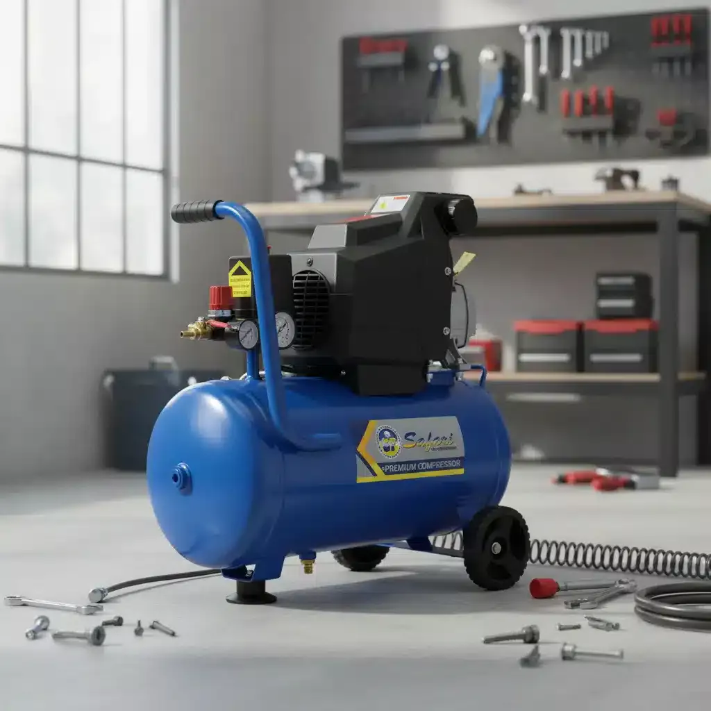 El diseño en color azul no solo es atractivo, sino que también refleja la calidad y durabilidad de la marca Safari. Esta compresora es una inversión inteligente para quienes valoran la fiabilidad y el rendimiento en sus herramientas.
