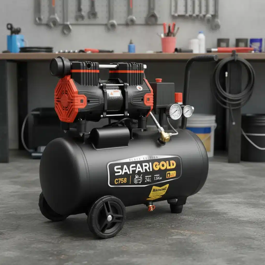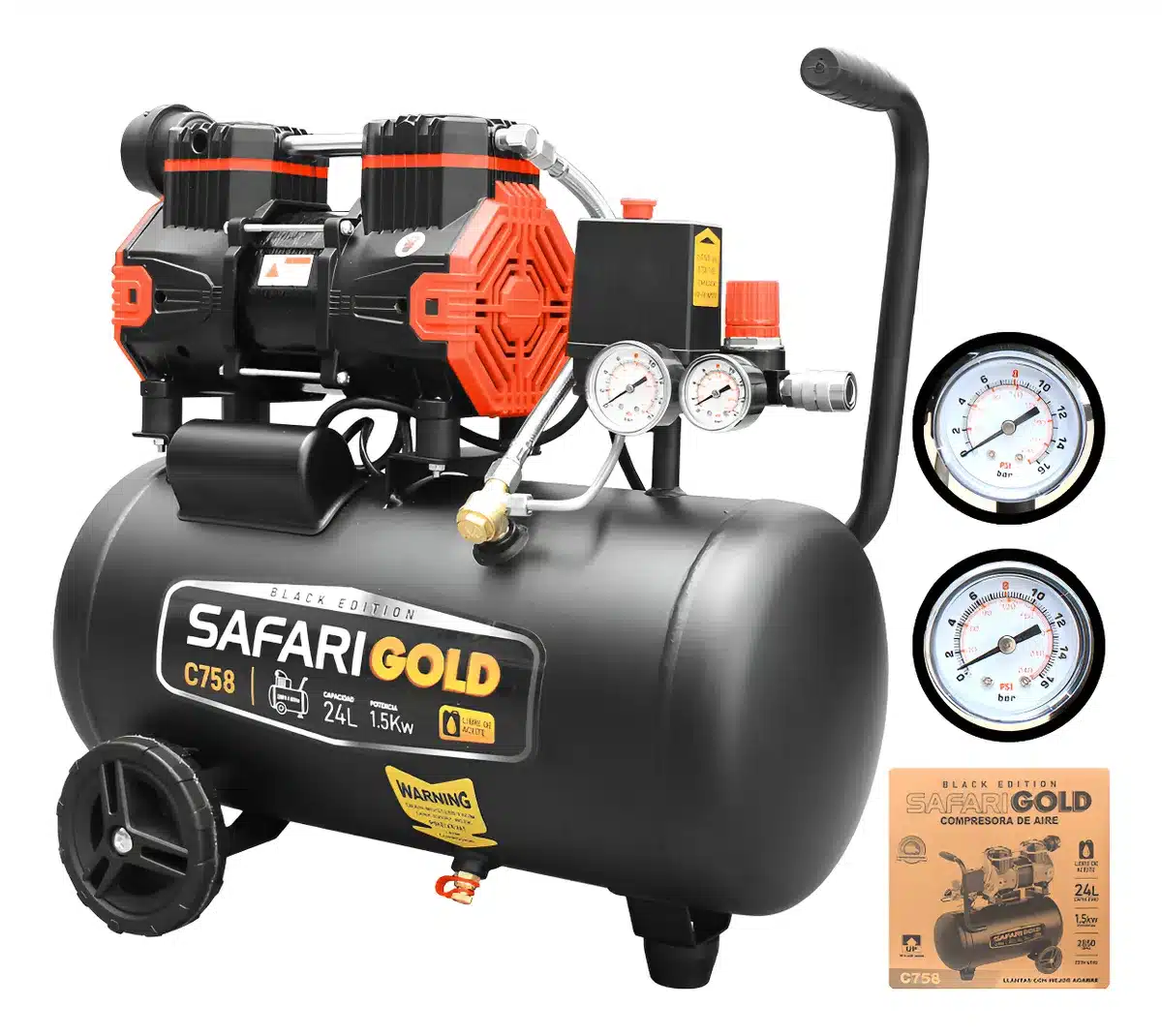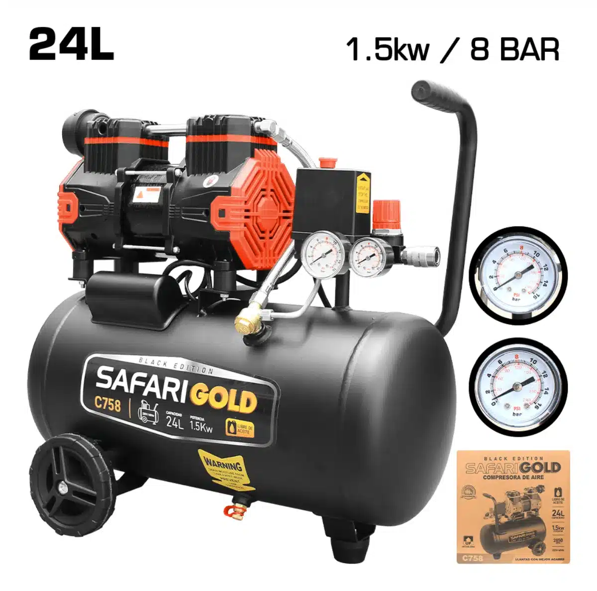 La Compresora de Aire Black 24 Litros C758 de Safari es la herramienta ideal para quienes buscan potencia y eficiencia en un diseño compacto. Con una capacidad de 9 litros y un caudal de aire de 192 l/min, este compresor es perfecto para trabajos de bricolaje, mantenimiento y aplicaciones industriales ligeras.