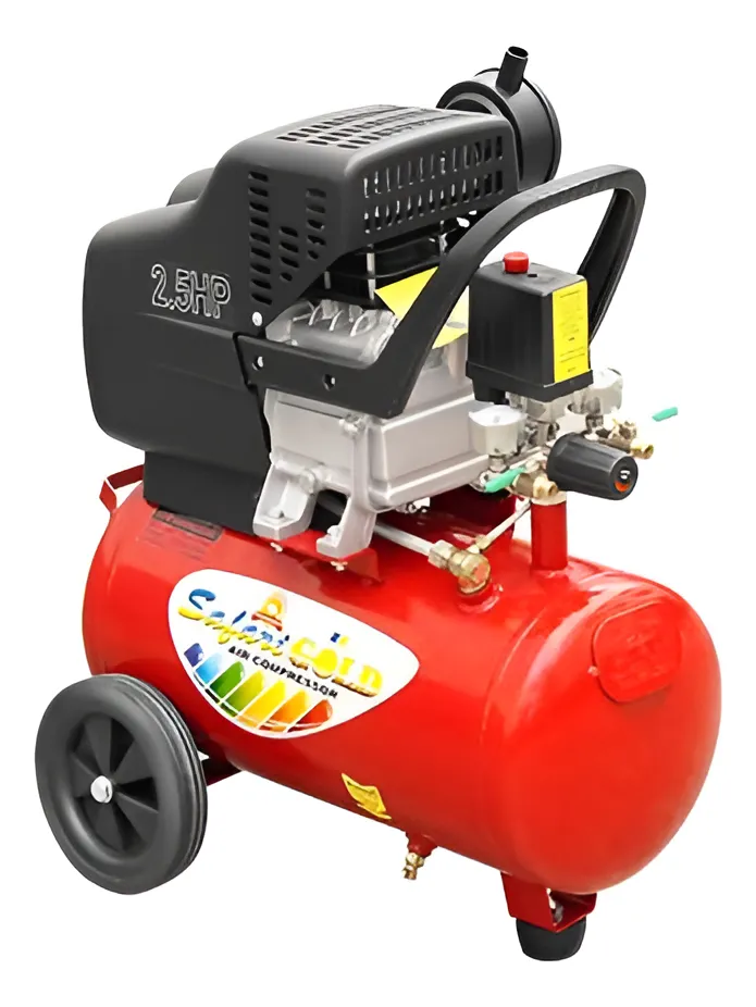 El diseño en color rojo no solo aporta un toque de estilo, sino que también incluye ruedas para facilitar su transporte. Esta compresora es robusta y confiable, diseñada para soportar el uso continuo en diferentes entornos. Su tamaño compacto permite almacenarla sin ocupar mucho espacio, convirtiéndola en una opción práctica para cualquier usuario.