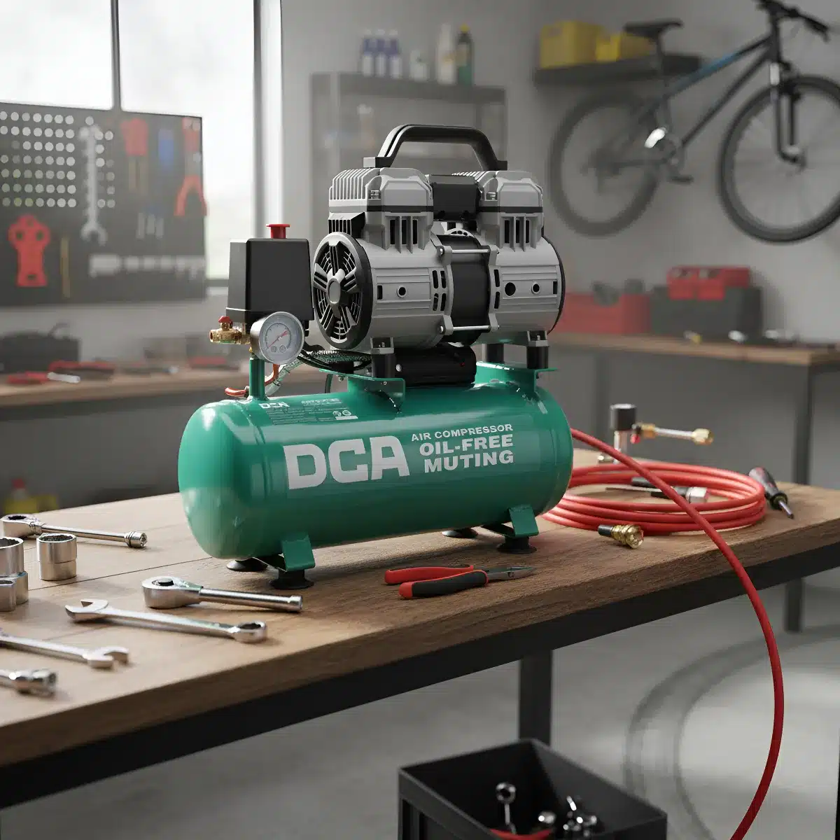 La Compresora Oil-free 1200w AQE1300/10L de DCA es la solución ideal para quienes buscan un rendimiento eficiente y confiable en sus proyectos. Con una potencia de 1.609 hp y un caudal de aire de 78 l/min, este modelo monofásico es perfecto para diversas aplicaciones, desde trabajos de bricolaje hasta tareas más exigentes.