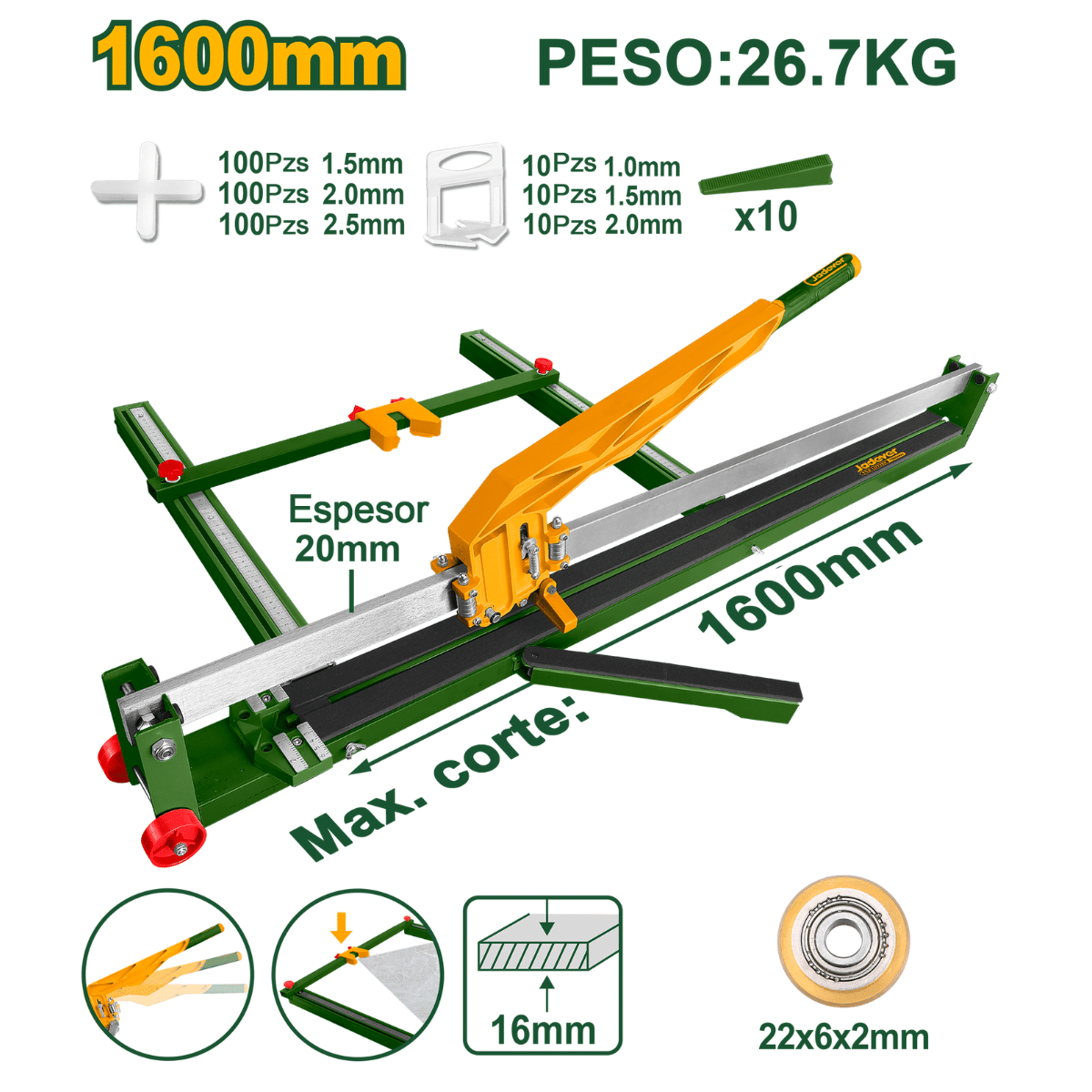 CORTA MAYOLICA 1600MM CORTE 16MM HOJA 22X6X6MM – JDTR1601