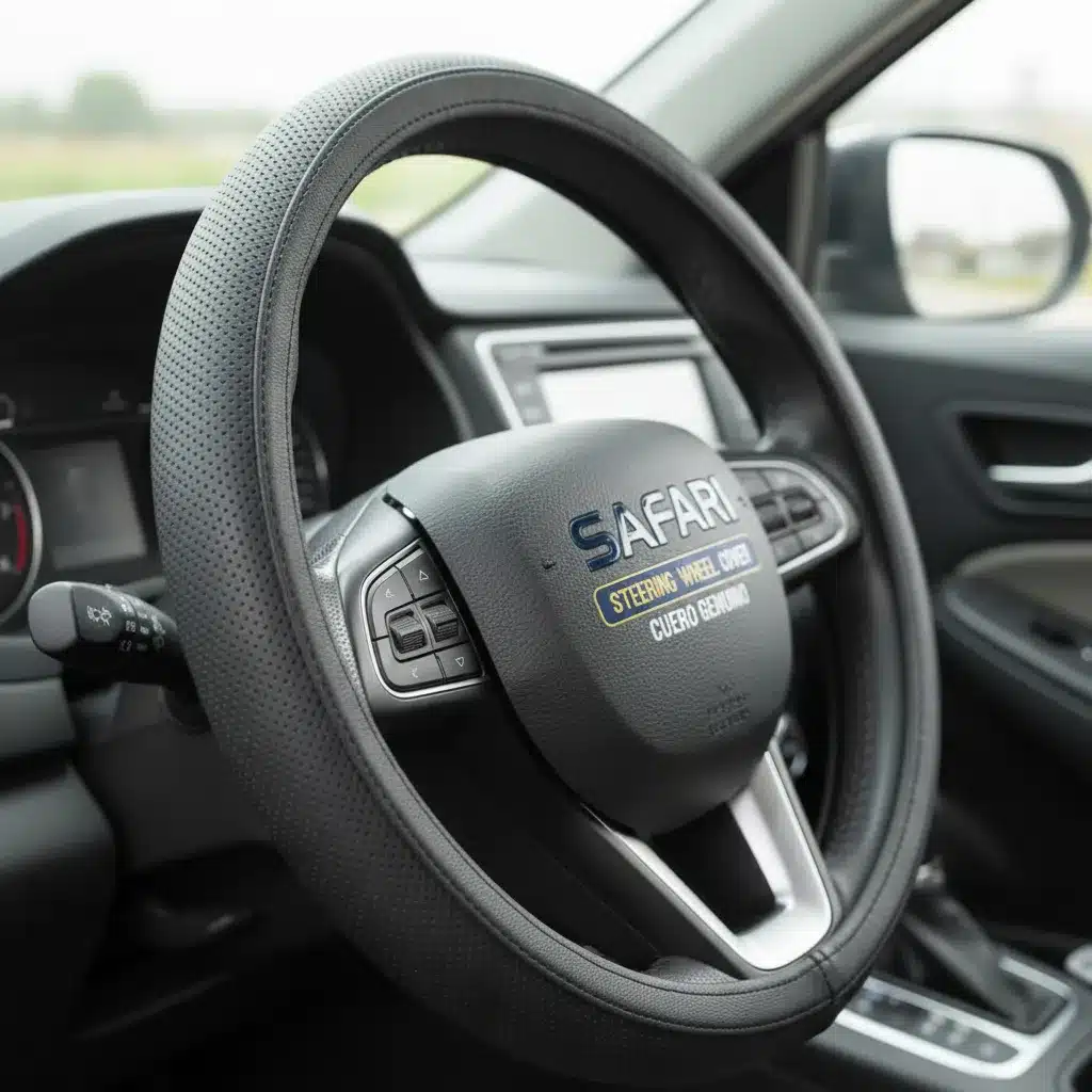 Transforma tu experiencia al conducir con el Cubre Volante De Cuero Safari Gen Negro Sft-18006bk, un accesorio que combina calidad, confort y estilo en un solo producto.