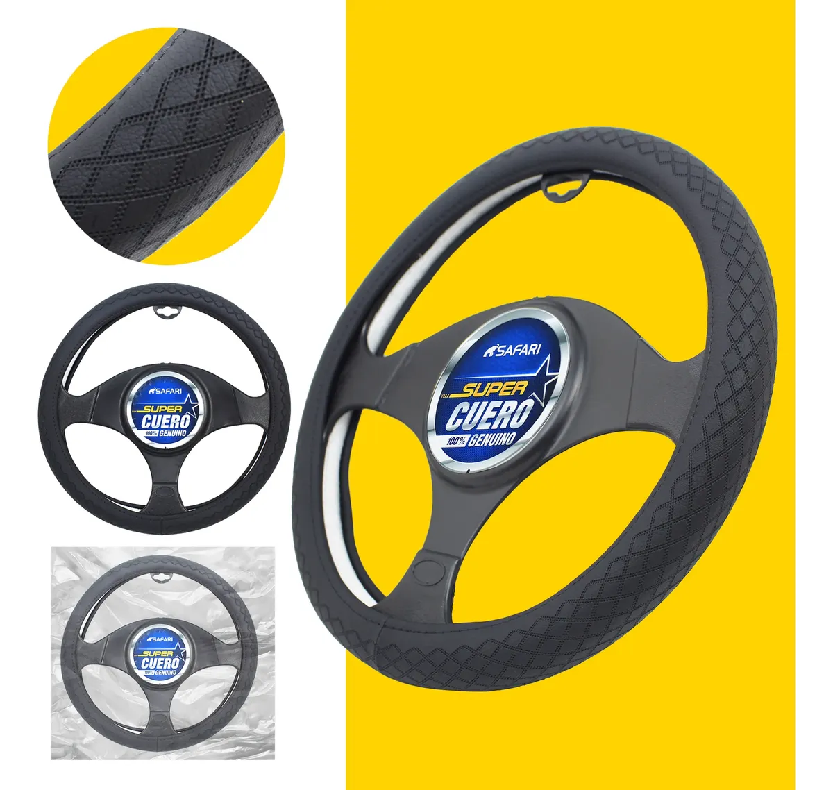 Transforma la experiencia de conducción con el Cubre Volante Cuero Gen Bk/rombos Bk Ventilado de Safari. Diseñado para autos y camionetas, este accesorio combina elegancia y funcionalidad, ofreciendo un toque sofisticado a tu vehículo. Su color negro y el material de cuero genuino aseguran durabilidad y un acabado premium que resalta la estética interior.