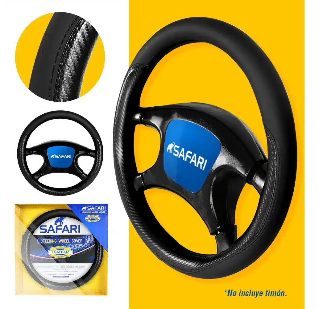 Transforma la experiencia de conducción con el Cubre Volante Cuero Gen/hqpu Bk C/onda 3d Bk - GP2103BK de la marca Safari. Este elegante accesorio está diseñado para adaptarse a vehículos como autos y camionetas, ofreciendo un ajuste perfecto con un diámetro externo de 38 pulgadas. Su material de cuero no solo proporciona un acabado sofisticado, sino que también garantiza durabilidad y resistencia al desgaste diario.