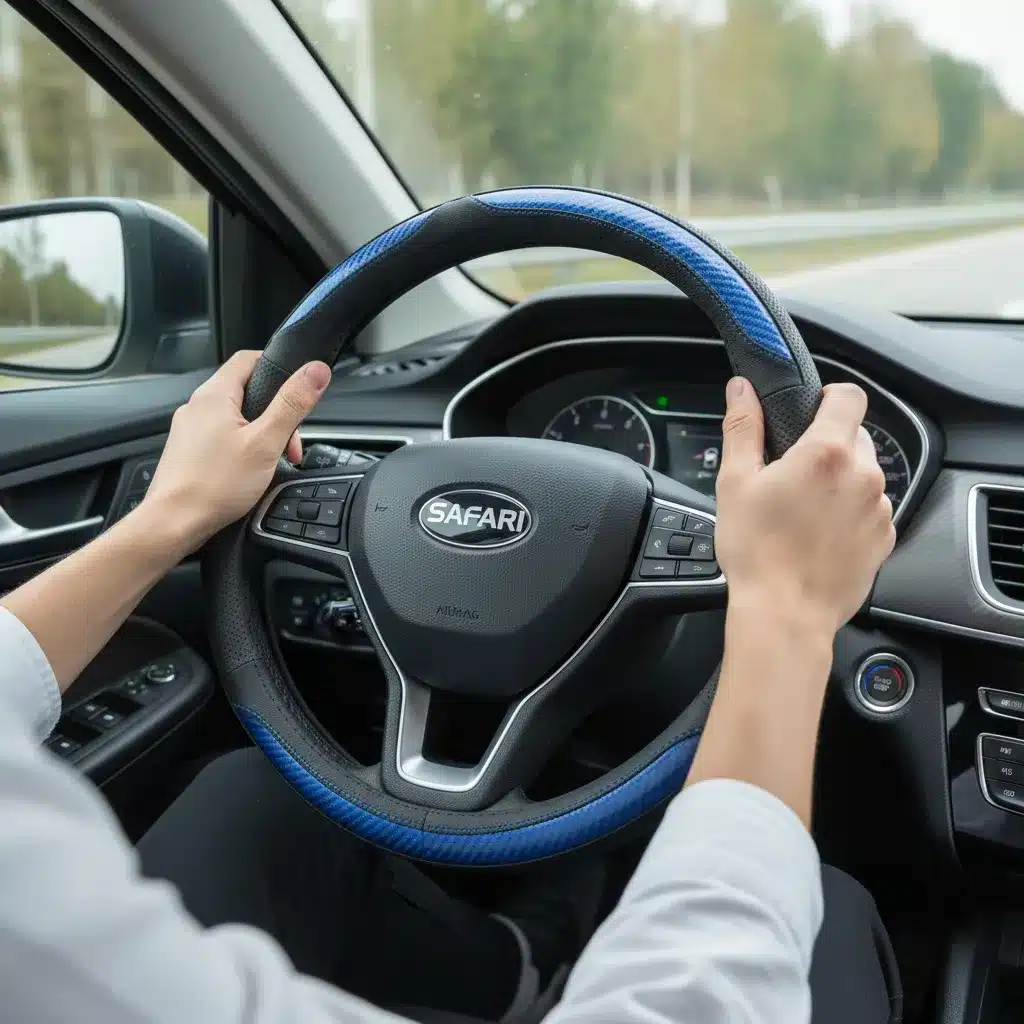Transforma la experiencia de conducción con el Cubre Volante Cuero Genuino Negro Carbon 3D Azu SFT-N1801BL de la marca Safari. Este accesorio no solo proporciona un toque de elegancia a tu vehículo, sino que también ofrece una superficie cómoda y antideslizante que mejora el agarre del volante, brindando mayor seguridad en cada viaje.