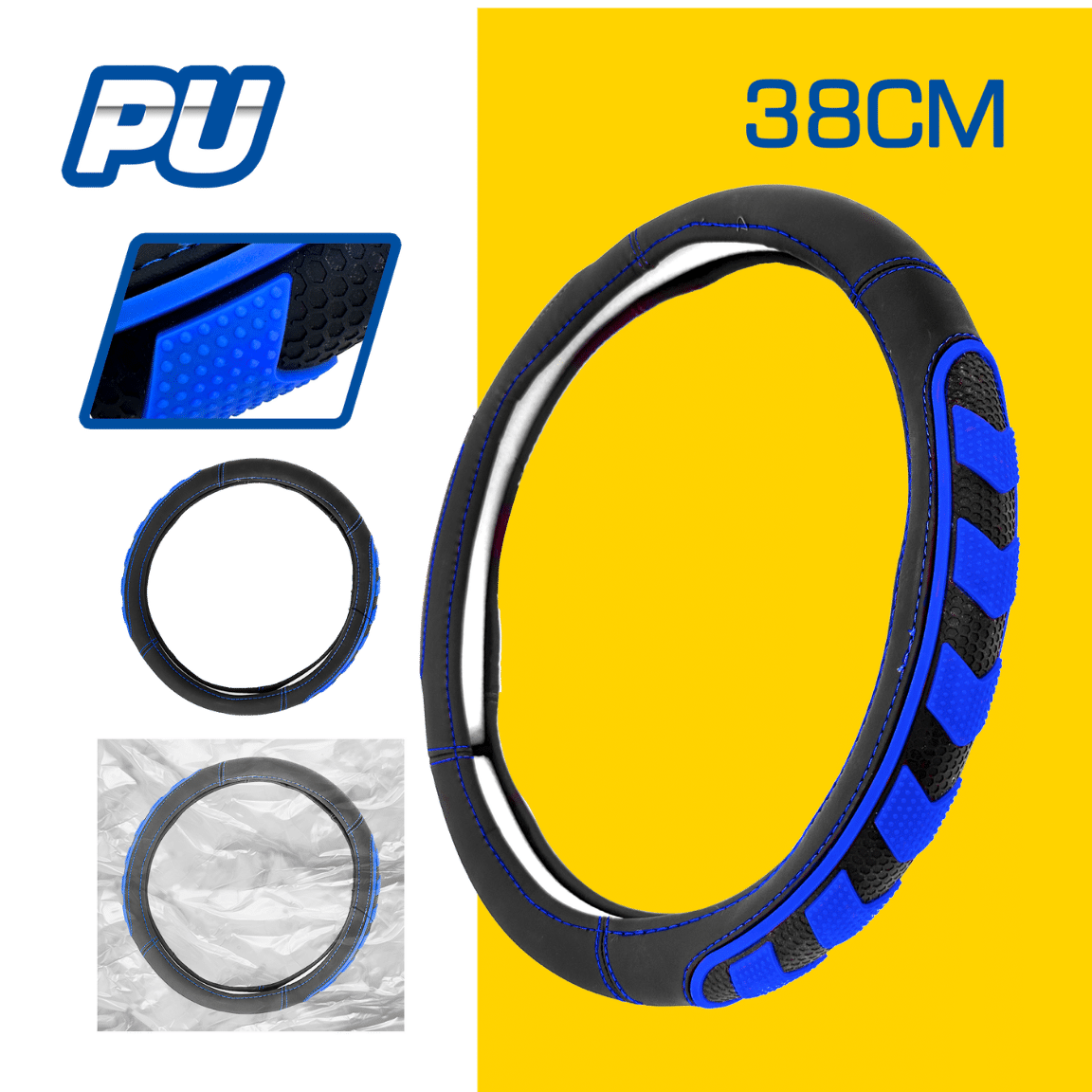 El Cubre Volante PU 38CM 600G Negro+Azul de la marca Safari es la elección ideal para quienes buscan un accesorio que combine estilo y funcionalidad. Diseñado para autos y camionetas, su diámetro externo de 38 cm se adapta perfectamente a la mayoría de los volantes, brindando un ajuste seguro y cómodo.