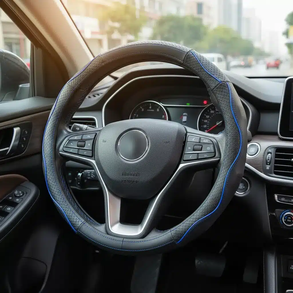 Transforma la experiencia de conducción con el Cubre Volante PU Caudriculado Curva/hilo Azul de Safari. Diseñado para autos y camionetas, este accesorio no solo ofrece una estética moderna y elegante, sino que también proporciona un agarre cómodo y seguro, mejorando tu control al volante.