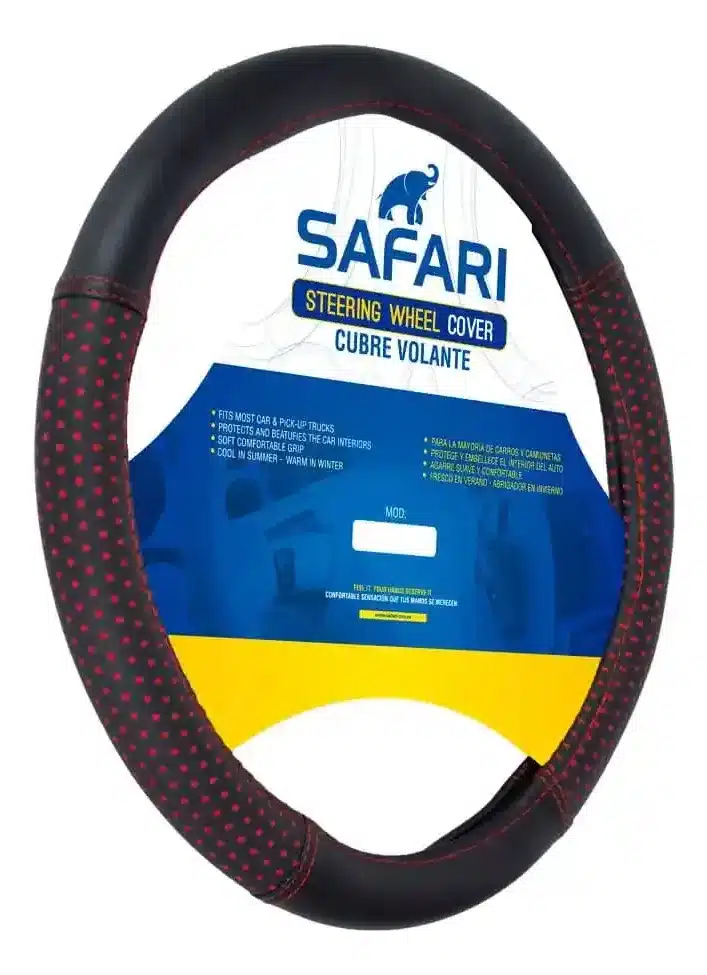 Transforma la experiencia de conducción con el Cubre Volante PU Cirulo Pequeño Fondo/hilo Rojo de Safari. Diseñado para autos y camionetas, este accesorio no solo ofrece una estética moderna, sino que también proporciona un agarre cómodo y seguro, mejorando tu control al volante. Su material de PU garantiza durabilidad y resistencia, adaptándose perfectamente a un diámetro externo de 38 pulgadas.