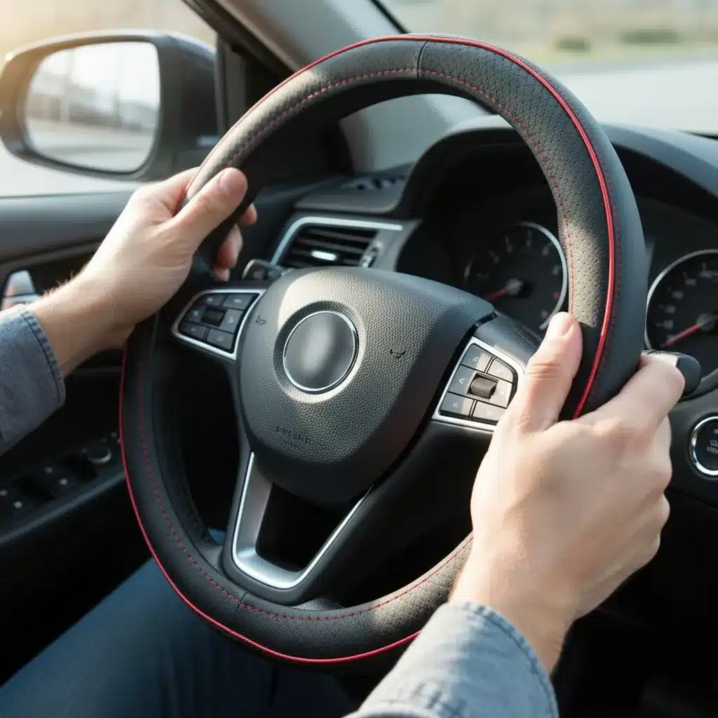 Transforma la experiencia de conducción con el Cubre Volante PU Cuadriculado Línea/Hilo Rojo de Safari. Diseñado para autos y camionetas, este accesorio no solo ofrece una estética moderna y elegante, sino que también proporciona un agarre cómodo y seguro, mejorando tu control al volante.