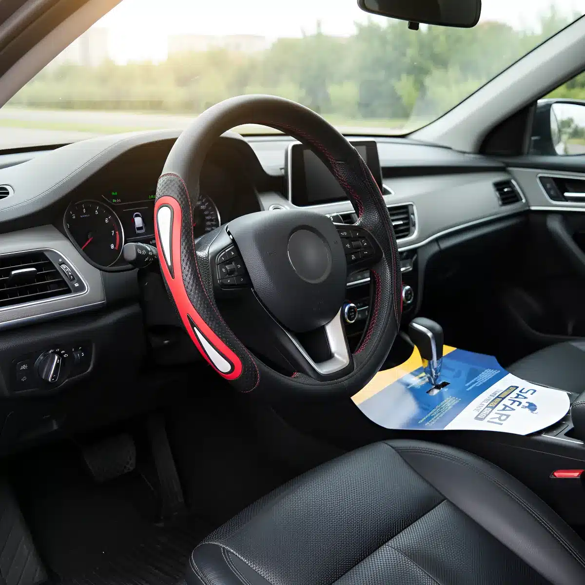 Fabricado en PU de alta calidad, este cubre volante es resistente y fácil de limpiar, lo que garantiza durabilidad y mantenimiento sencillo. Con un diámetro externo de 38 pulgadas, se adapta perfectamente a la mayoría de los volantes, asegurando un ajuste ceñido y sin deslizamientos. La elección ideal para quienes buscan combinar funcionalidad y diseño en su automóvil.