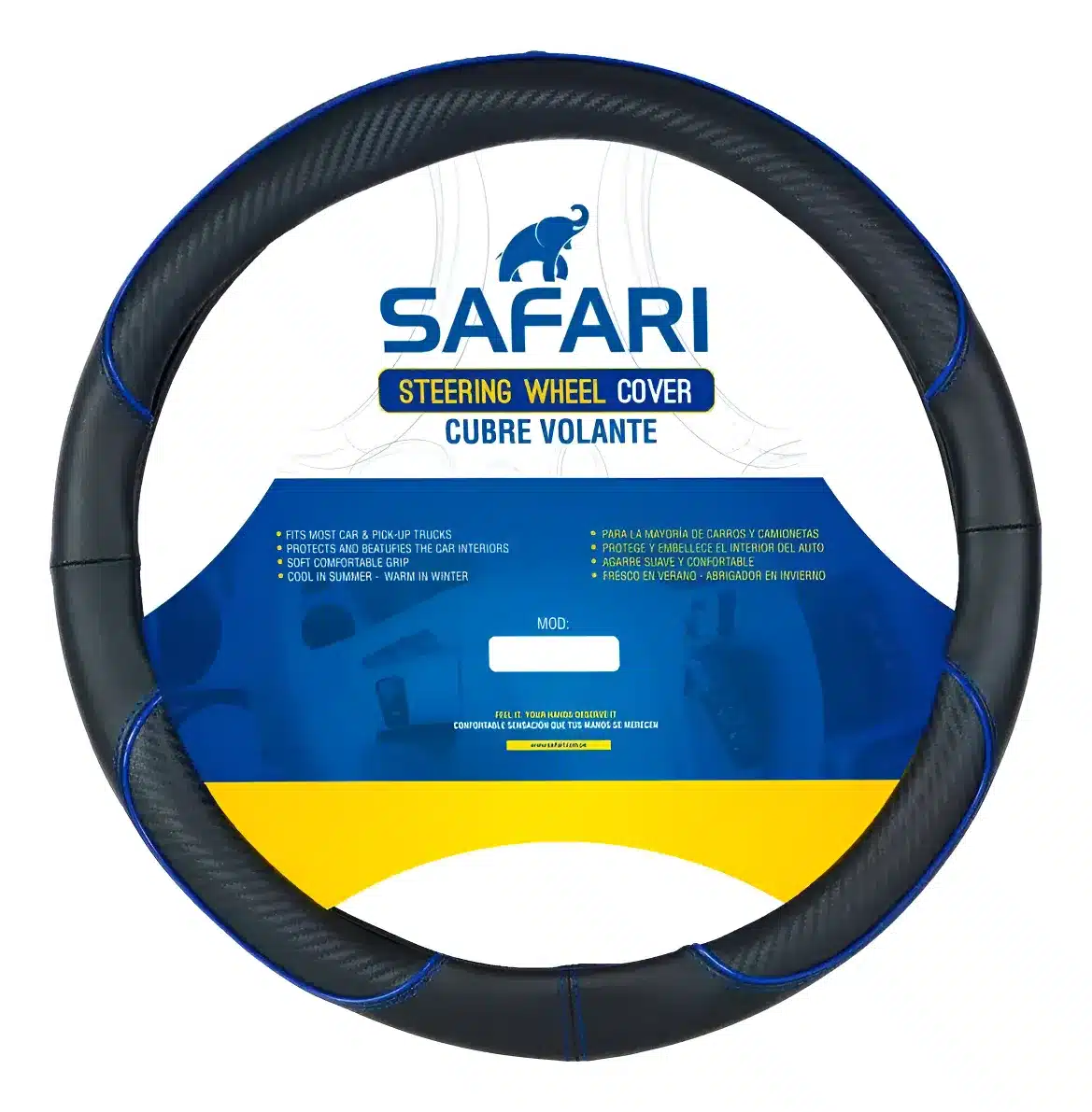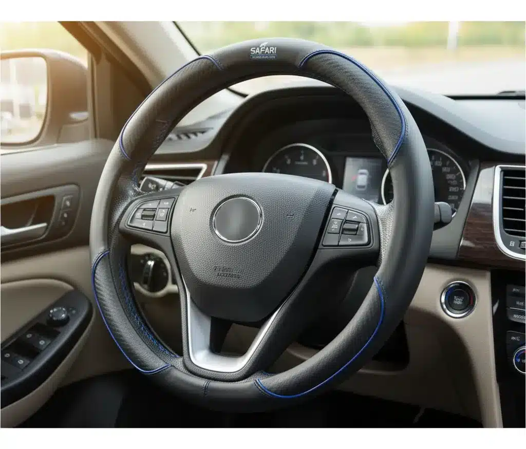 Transforma la experiencia de conducción con el Cubre Volante PU Detalle Carbon Línea Azul de Safari. Diseñado para autos y camionetas, este accesorio no solo protege tu volante, sino que también añade un toque de estilo moderno a tu vehículo. Su material de PU de alta calidad garantiza durabilidad y resistencia al desgaste, mientras que su diseño elegante con detalles en carbono resalta la estética de tu interior.