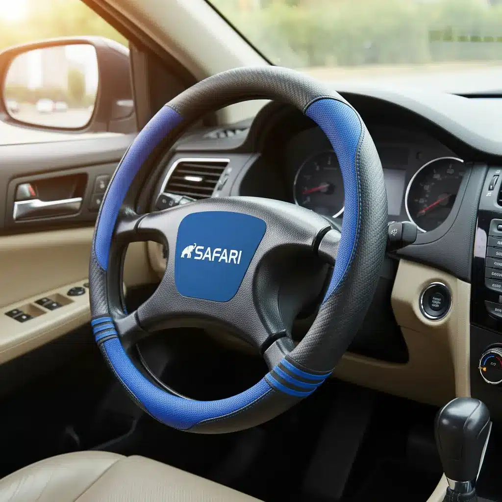 Transforma la experiencia de conducción con el Cubre Volante PU Negro con Líneas Ventiladas Azules de Safari. Diseñado para autos y camionetas, este accesorio no solo proporciona un agarre cómodo, sino que también añade un toque de estilo a tu vehículo. Su material de PU garantiza durabilidad y resistencia, mientras que su diseño ventilado permite una mejor circulación del aire, manteniendo tus manos frescas en todo momento.
