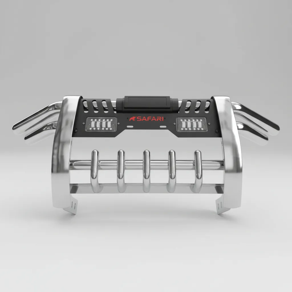 Optar por la Defensa de Acero Inox Negro con Luz de Safari es una inversión en seguridad y estilo, ideal para quienes valoran la calidad y el diseño en cada detalle de su vehículo. Mejora tu experiencia de conducción y destaca en la carretera con este accesorio indispensable.