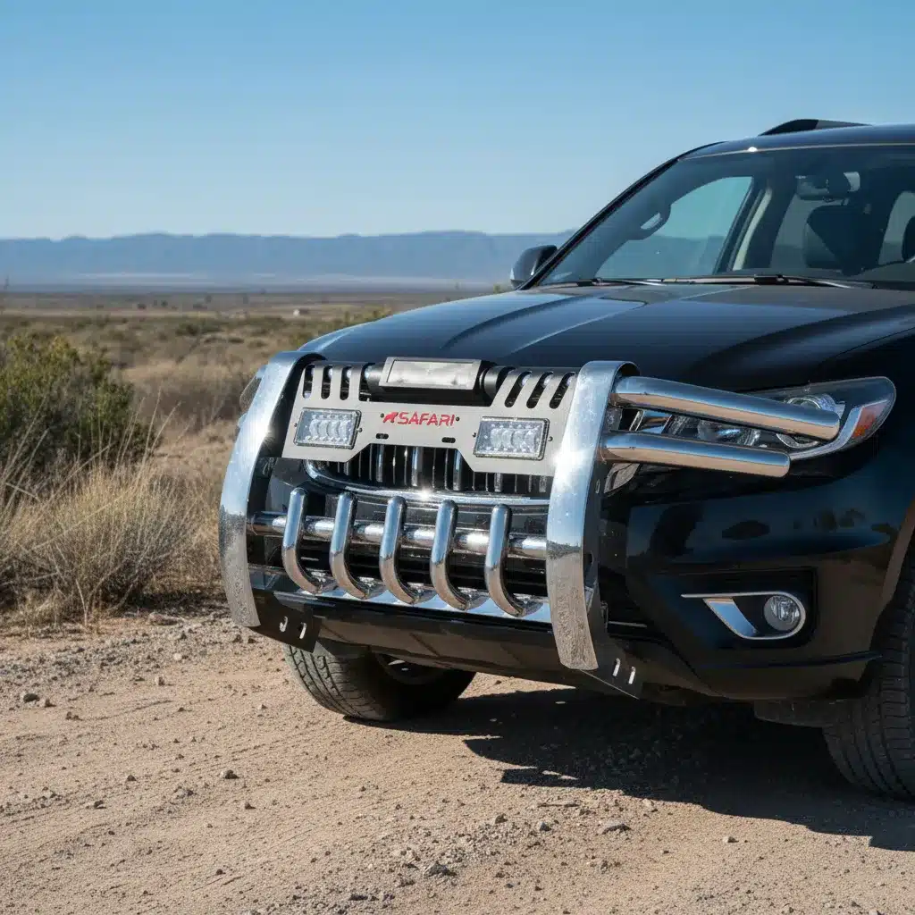 La Defensa de Acero Inox Negro con Luz para Volkswagen Amarok de la marca Safari es la solución ideal para quienes buscan robustez y estilo en su vehículo. Diseñada específicamente para autos y camionetas, esta defensa no solo proporciona una protección superior, sino que también realza la estética del Amarok, dándole un toque distintivo y moderno.