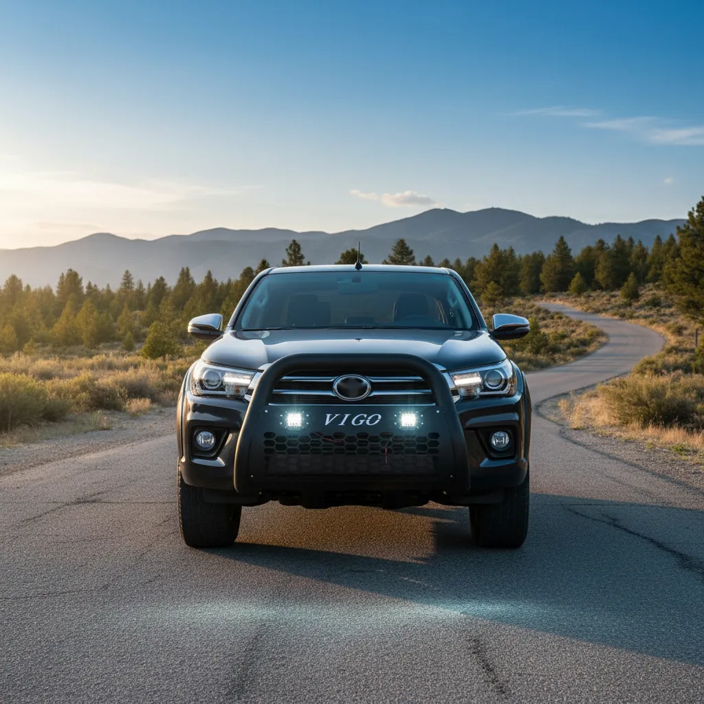 El diseño elegante y resistente de esta defensa no solo protege tu vehículo de impactos, sino que también resalta su apariencia. Con un acabado que complementa la estética de la Toyota Vigo, es una adición que no pasará desapercibida.