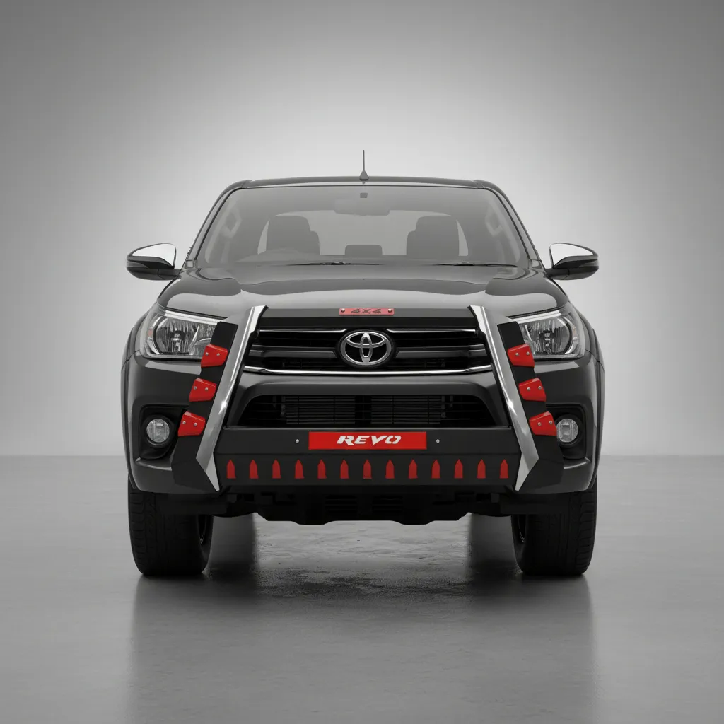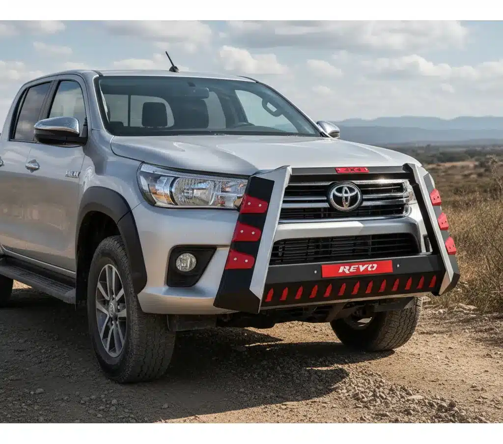 Diseñada específicamente para autos y camionetas, esta defensa delantera no solo proporciona una protección efectiva, sino que también realza la estética de tu Hilux Revo. Su diseño se adapta perfectamente a la estructura del vehículo, ofreciendo un ajuste preciso que no compromete la funcionalidad.