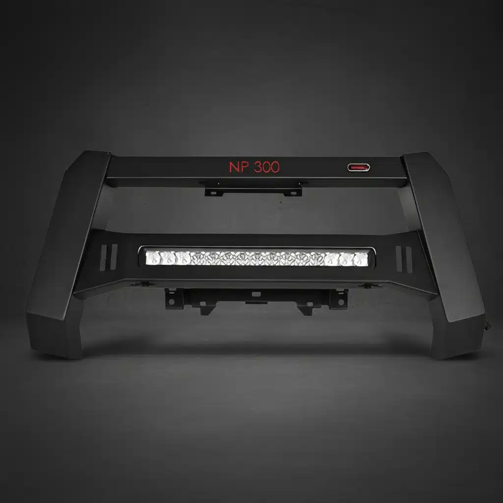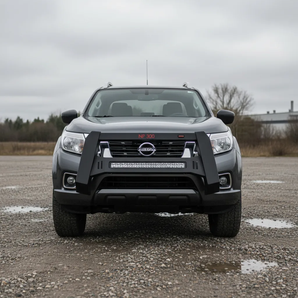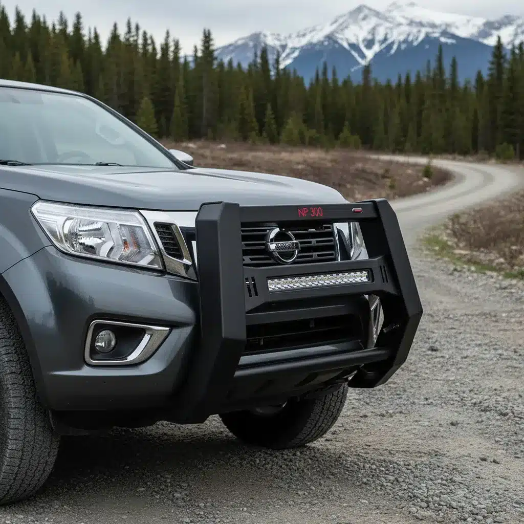 Diseñada específicamente para autos y camionetas, su instalación en la parte delantera del vehículo no solo mejora la estética, sino que también proporciona una protección adicional ante impactos. Con un diseño que se adapta perfectamente a la Frontier NP300, esta defensa combina funcionalidad y un acabado elegante que realza la apariencia del vehículo.