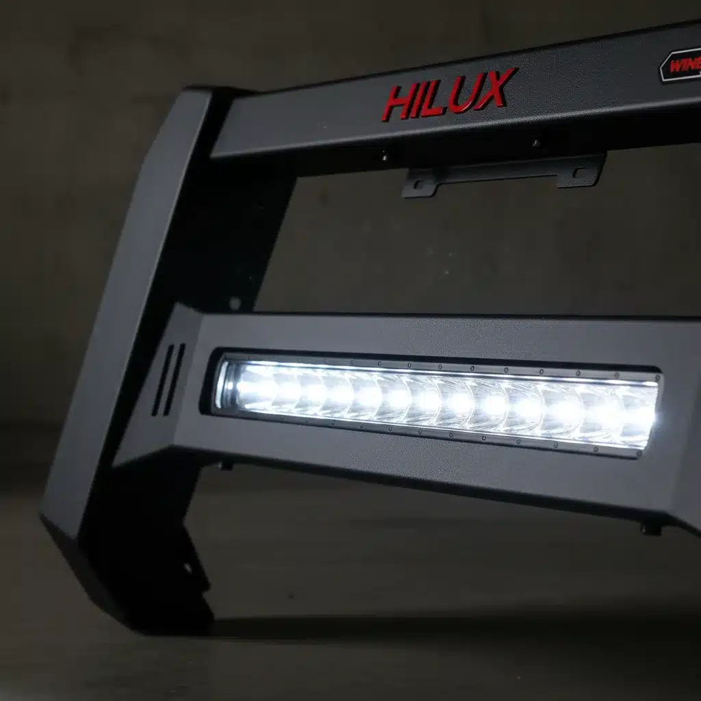 El modelo W56BDM no solo proporciona protección, sino que también incorpora luces que aumentan la visibilidad y seguridad en la carretera. Su acabado en negro le otorga un toque moderno y elegante, adaptándose a diferentes estilos de vehículos. Esta defensa es perfecta para quienes valoran tanto la seguridad como la apariencia de su auto.
