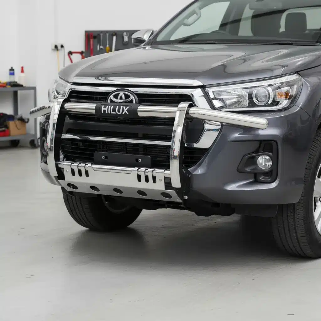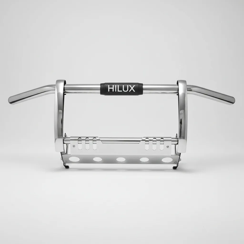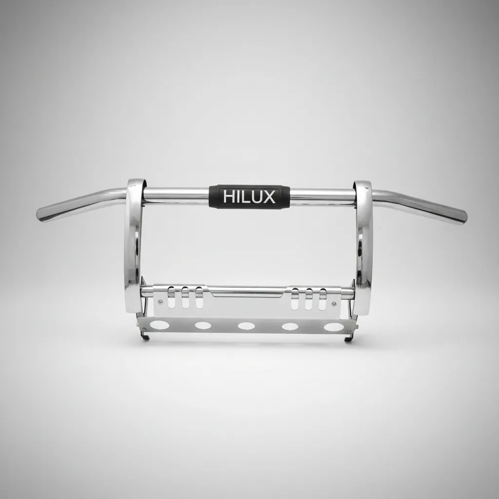 Diseñada específicamente para el Toyota Hilux Revo, su ajuste preciso garantiza una instalación sencilla y un acabado estético que complementa la apariencia del vehículo. Su diseño no solo mejora la seguridad, sino que también aporta un toque de agresividad y personalidad a tu camioneta.