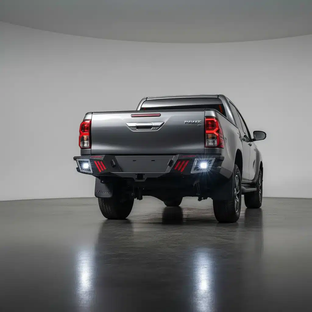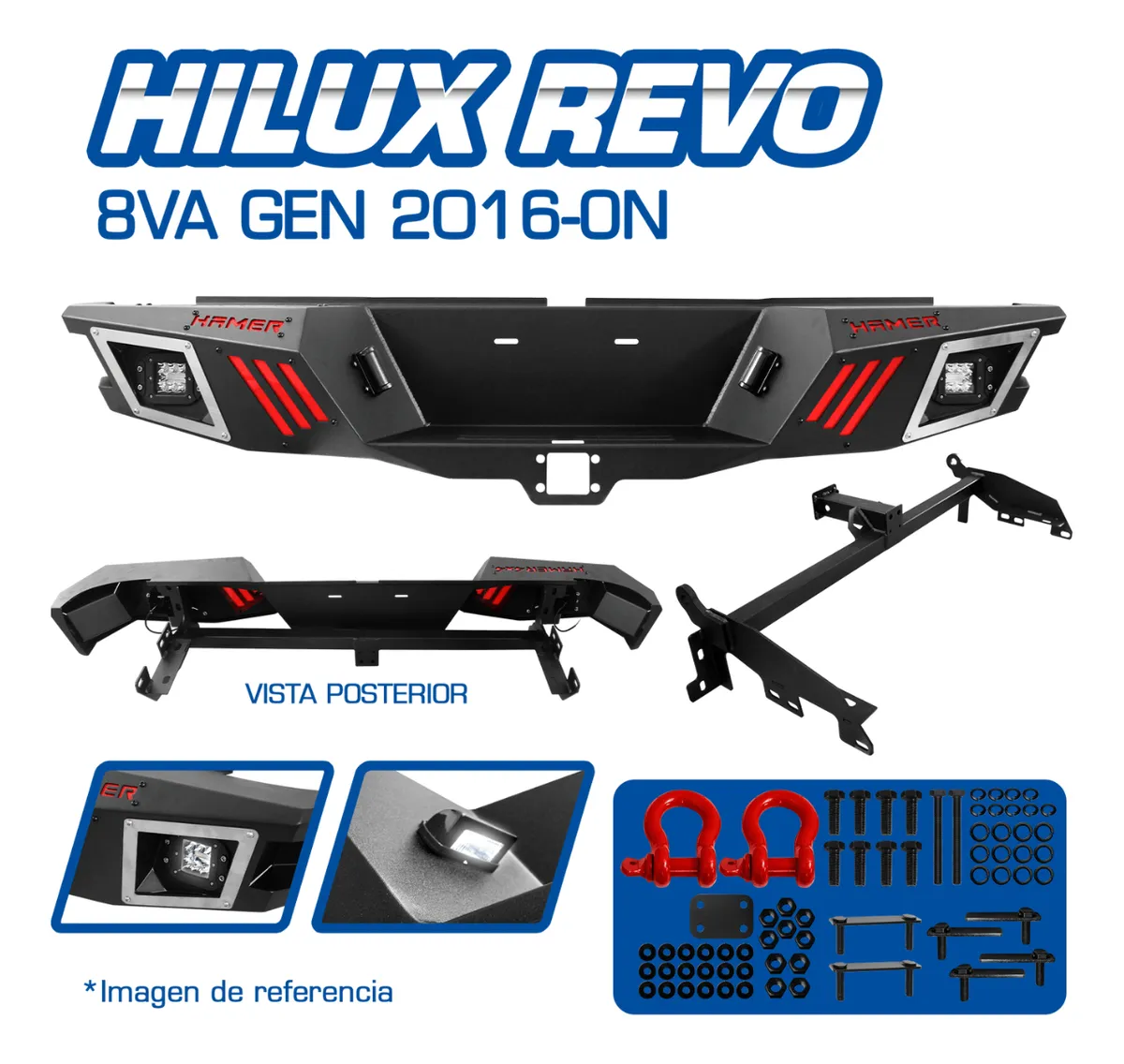 Diseñada específicamente para camionetas, su instalación es sencilla y se adapta perfectamente a la estética del Hilux, realzando su apariencia sin comprometer su funcionalidad. La posición trasera de esta defensa proporciona una mayor seguridad y resistencia, asegurando que tu vehículo esté preparado para cualquier desafío.
