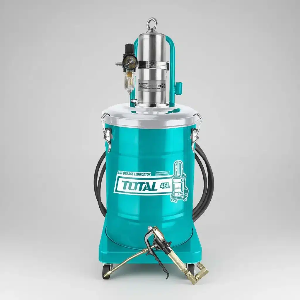 Incluye accesorios como acoples y manguera, lo que facilita su uso inmediato. La válvula de control de flujo permite un manejo preciso del engrase, optimizando el tiempo y los recursos. Con una presión de trabajo de 4500 lb/in2 y una capacidad máxima de 4.5 L, es perfecta para tareas exigentes.