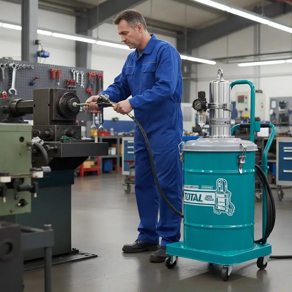 La Engrasadora Neumática de 45 Litros y 400 bar es la herramienta ideal para profesionales del sector industrial que buscan eficiencia y durabilidad. Con un caudal de 850 g/min y una relación de compresión de 50:01:00, este modelo THT118452 garantiza un rendimiento excepcional en aplicaciones de engrase a gran escala.