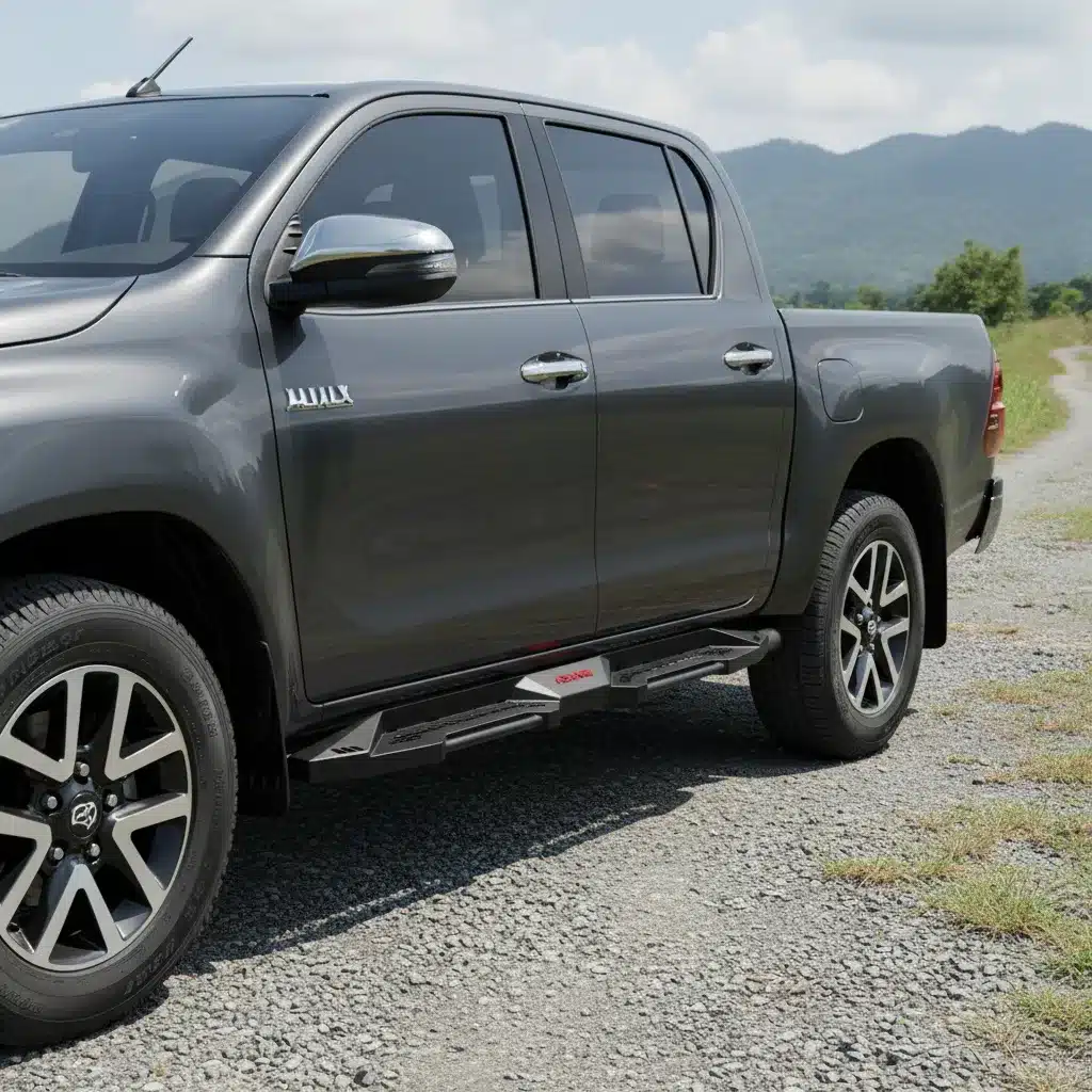 El estribo Safari para Ford Ranger de 4ta generación (2020 en adelante) es la solución perfecta para quienes buscan funcionalidad y estilo en su vehículo. Diseñado específicamente para autos y camionetas, este estribo combina resistencia y un diseño elegante que complementa la estética de tu Ford Ranger.