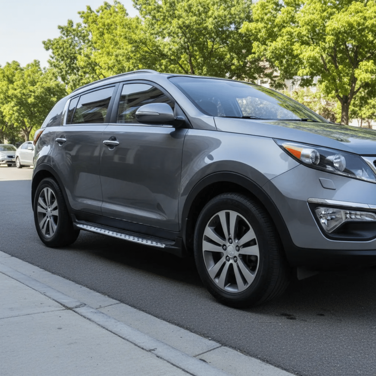 El estribo se coloca lateralmente en el vehículo, lo que lo convierte en un accesorio práctico y estético. Incluye herrajes de montaje, lo que simplifica su colocación y asegura un ajuste perfecto, permitiendo que tu Kia Sportage luzca mejor que nunca.