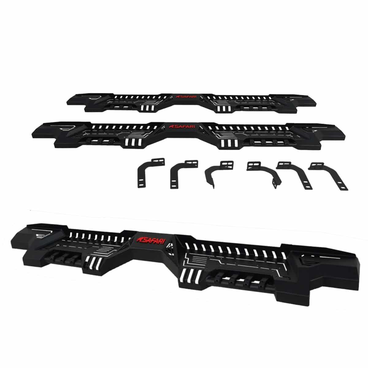 El Estribo T2 para Hilux Revo 8va Generación, diseñado específicamente para modelos desde 2016 en adelante, es la solución ideal para quienes buscan funcionalidad y estilo en su vehículo. Fabricado por la reconocida marca Safari, este estribo lateral está elaborado en metal de alta resistencia, garantizando durabilidad y un soporte confiable para el acceso a la camioneta.