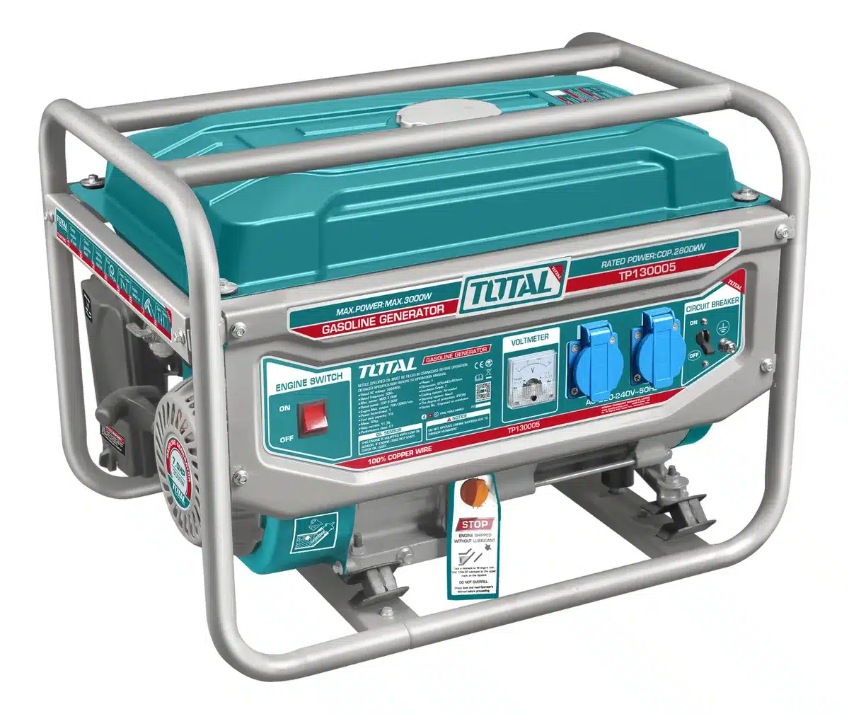 Este modelo, TP130005-5, es ideal para quienes requieren un generador confiable y duradero. Su potencia nominal de 2.8 kW lo convierte en una opción versátil para diversas aplicaciones. Ya sea para emergencias o actividades al aire libre, el Generador Gasolinero Total es una herramienta que no puede faltar.