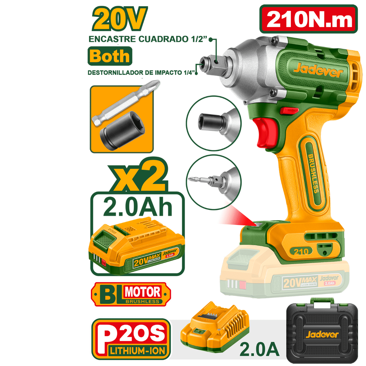 LLAVE/DESTORNILLADOR DE IMPACTO 20V 1/2″ 2100NM 2X2.0AH MALETIN – JDCD3B21